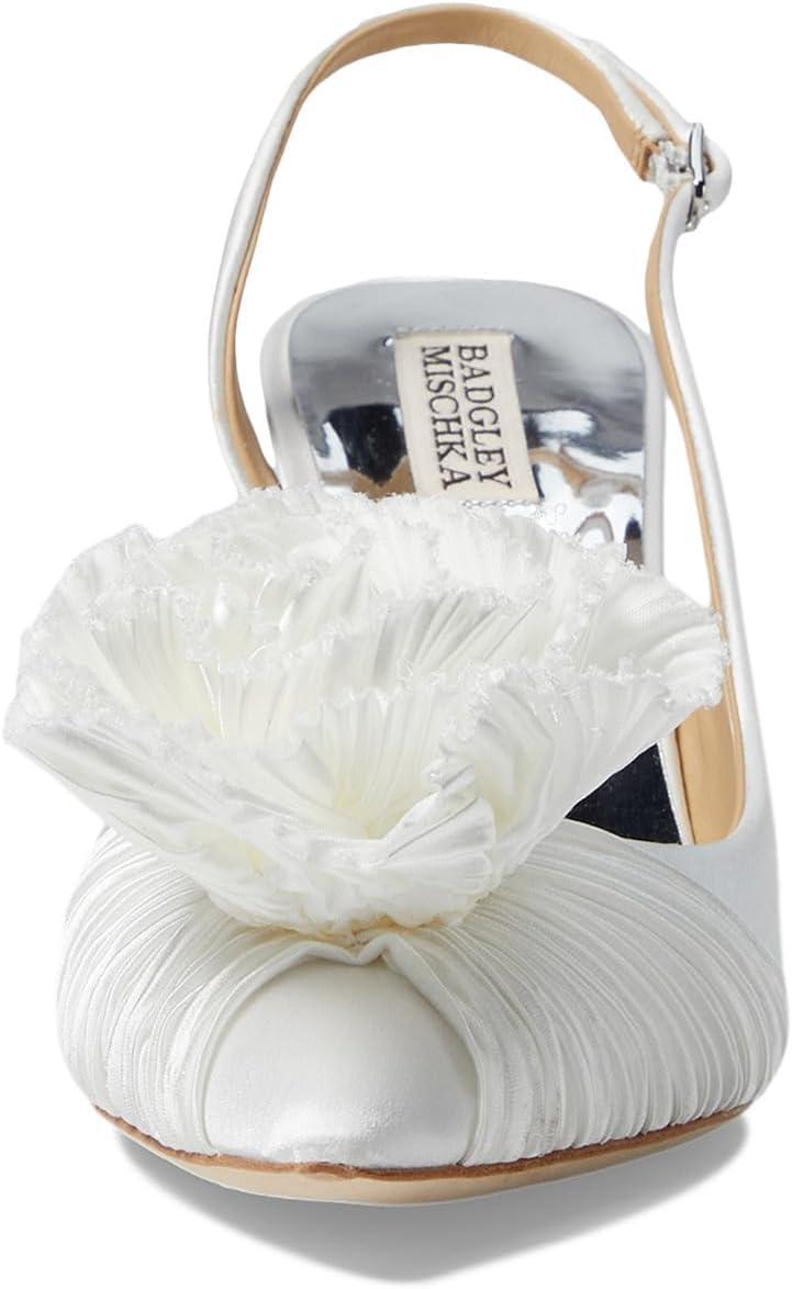 Поднимите свою игру в моде на новые высоты с Badgley Mischka Туфли-лодочки Blaire. Обувь с низким берцем имеет шелковый верх с объемным цветочным рисунком и регулируемую застежку на ремешке-рогатке с пряжкой.