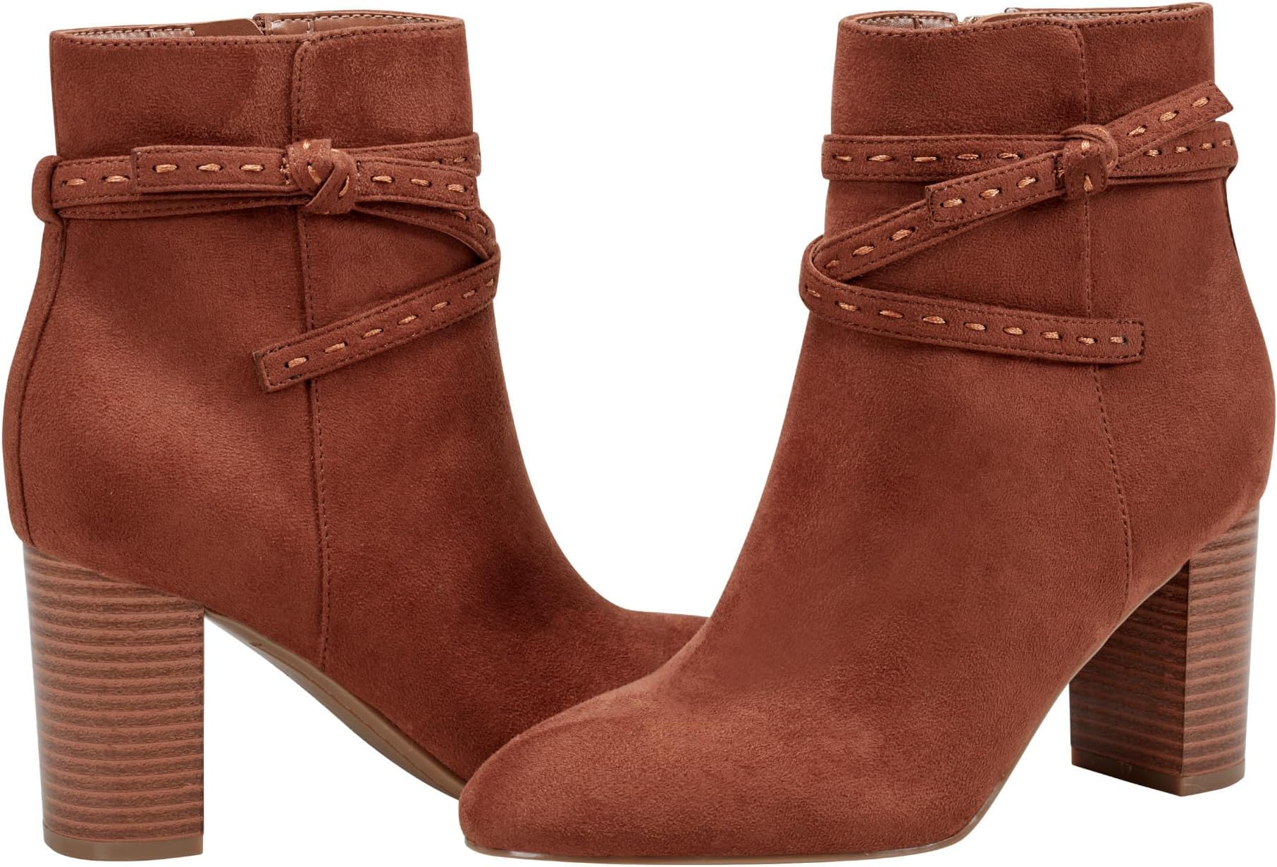Дизайн Bandolino Ocorn создан для того, чтобы каждый момент был изящным и в то же время шикарным. Эти ботильоны на высоком каблуке украшены множеством ремешков и боковым узлом. Верх из искусственной замши дополнен боковой застежкой-молнией для удобства входа.
