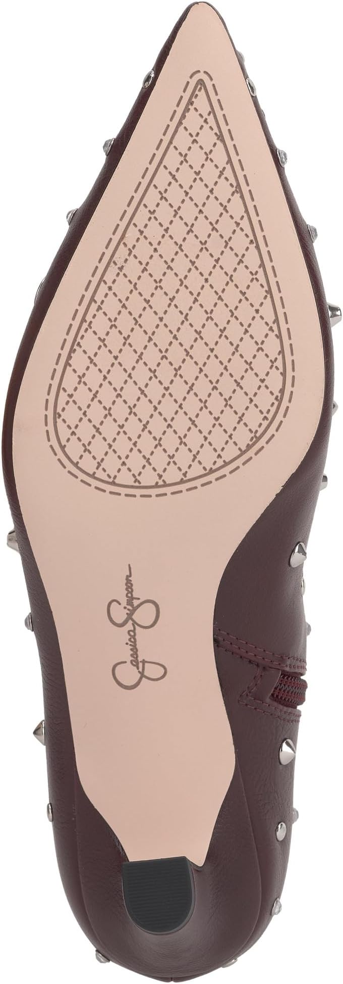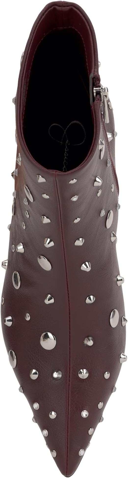 Ботильоны Jessica Simpson Viviana Kitten на каблуке с шипами дополнены деталями, которые вы ожидаете от бренда, с заклепками по всему периметру. Изящный силуэт с заостренным носком, обувь высотой до щиколотки, низкий каблук "котенок" и боковая молния для удобства ношения.