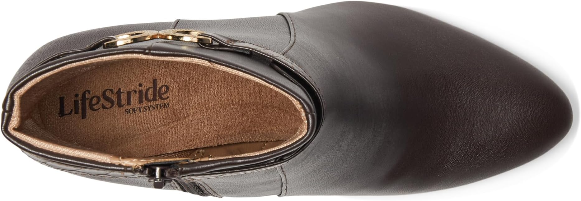Ботинки LifeStride Guild 2 с утонченными металлическими деталями настолько изящны и шикарны, что вам никогда не захочется снимать их. Эти ботильоны-платья на высоком каблуке с верхом из искусственной кожи и миндалевидной формой носка, застежкой на молнию сбоку, украшением в виде металлической пряжки и ремешком с тиснением. Подкладка из полиэстера, стелька, носок и пяточный упор изготовлены из частично переработанных материалов. Благодаря поролоновой стельке и пакету Soft System comfort эти ботинки обеспечивают поддержку в течение всего дня, гибкость и амортизацию. Эти ботильоны отлично подходят для многих случаев.