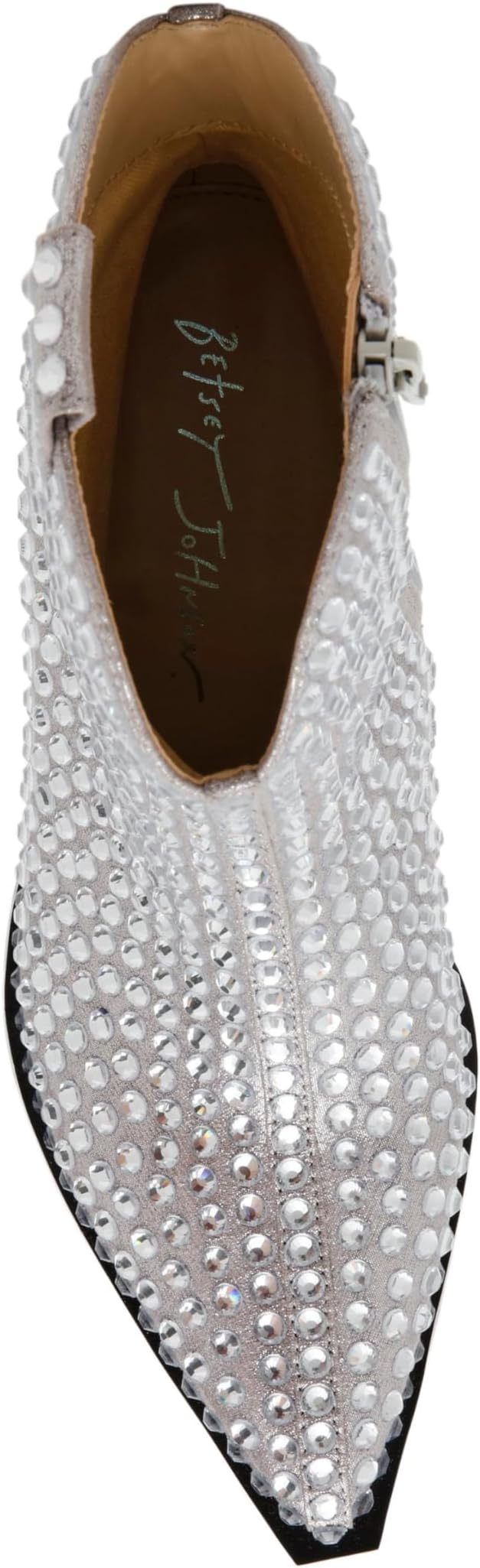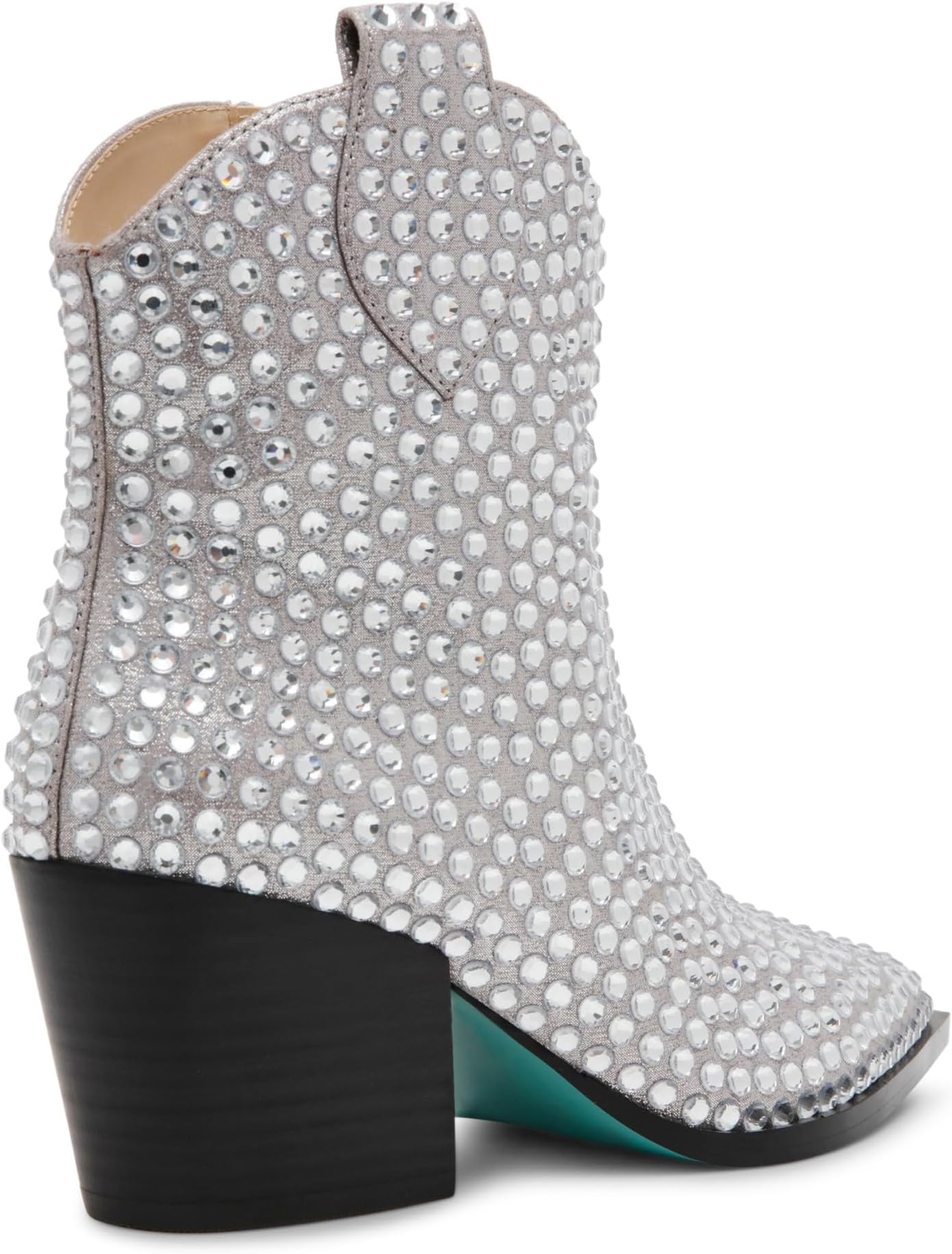 Идеальный повод подчеркнуть любой ваш образ! Ботильоны Neil от Blue от Betsey Johnson выполнены в стиле Нэшвилл вместо Лас-Вегаса с классической изогнутой линией верха, обрезанным носком и угловым каблуком ковбойских ботинок, а также украшены стразами по всей поверхности для придания пикантности образу. Массивные заклепки со стразами, инкрустирующие верх, придают текстуру и блеск этим гламурным ботинкам до щиколотки.Артикул: #9975389