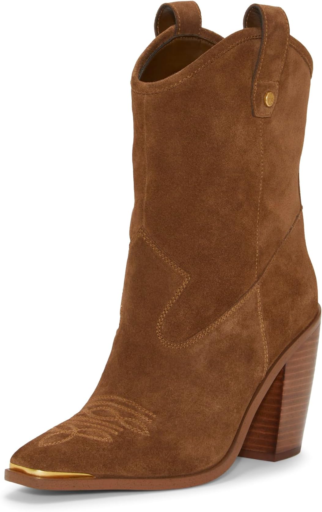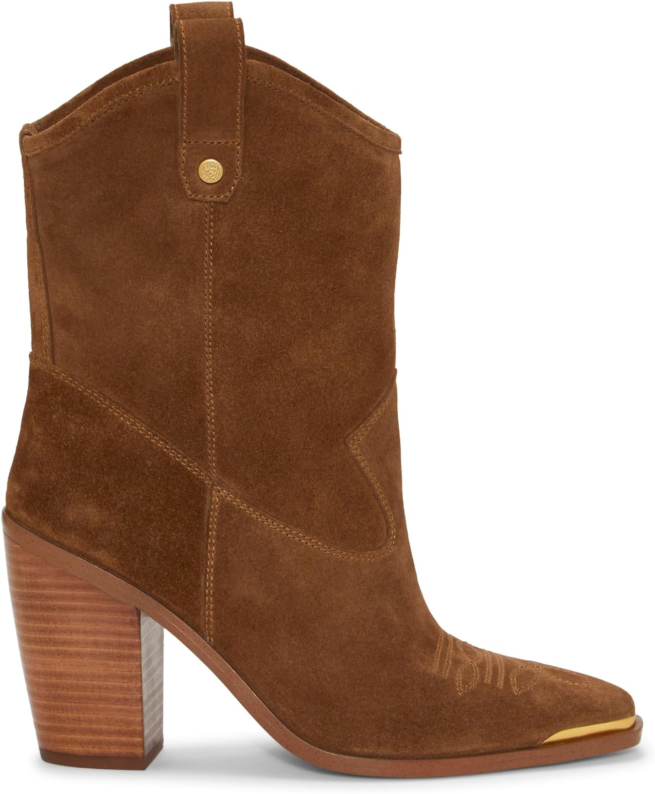 Эти туфли в западном стиле от Vince Camuto Ботильоны Abel сидят на наборном каблуке. Туфли с отрезным носком, украшенные отстрочкой по верху на золотистом носке vamp и петельками для подтягивания, украшены золотыми заклепками с логотипом для создания роскошного образа.