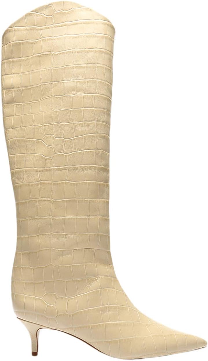 Модель Schutz Maryana Lo из нейтральной кожи со змеиным тиснением выглядит шикарнее, чем когда-либо. Изящный силуэт, доходящий до колен, с мягко заостренным носком и удобным каблуком "котенок" для легкой подтяжки.