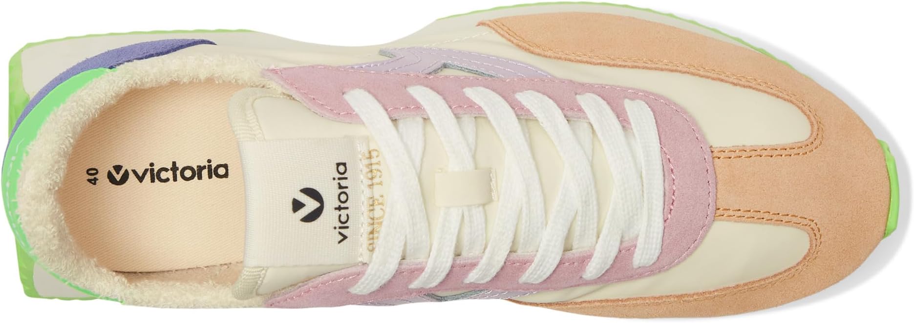 Перенеситесь в прошлое с винтажным шармом кроссовок victoria Cosmos Suede Multicolor & Nylon. Эти туфли с низким берцем отличаются фирменной V-образной отделкой и уникальным сочетанием материалов, в том числе нейлонового верха с замшевой отделкой. Подошва из органической резины обеспечивает долговечность и экологичность. Внутри мягкая махровая подкладка и покрытая хлопком съемная стелька comfort foam обеспечивают максимальный комфорт для ваших ног. Благодаря не оставляющей следов подошве и сверхлегкому дизайну эти туфли идеально подходят для повседневной носки.
