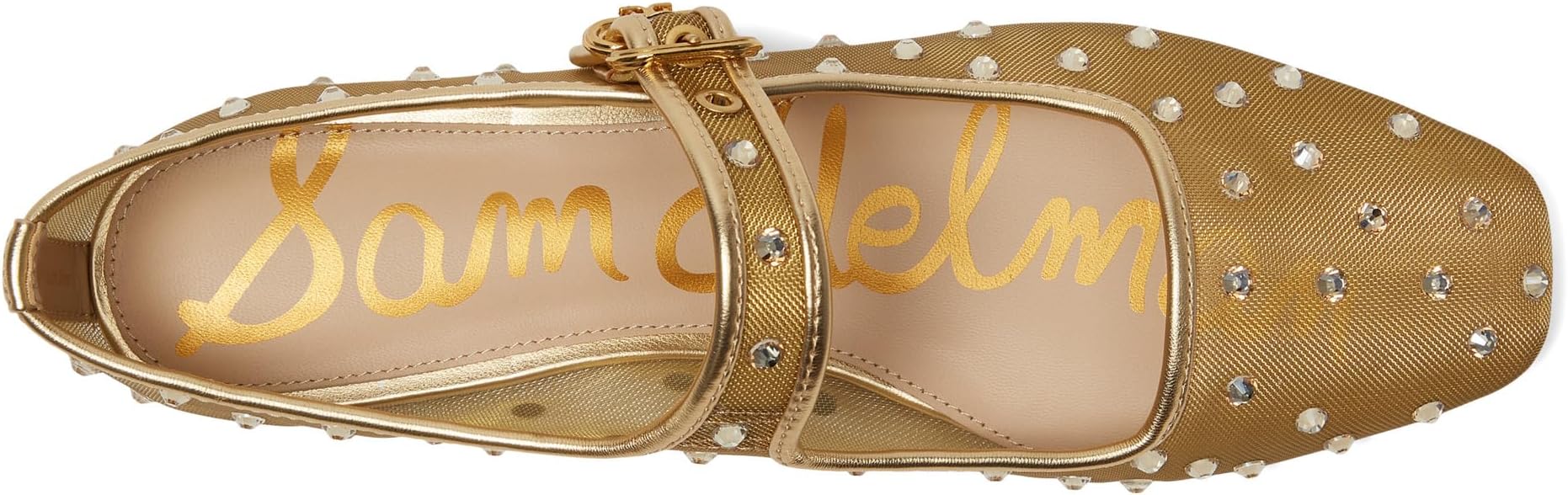 Станьте центром внимания на вечеринке в легких балетках Sam Edelman Michaela Shine. Обувь, украшенная стразами, имеет сетчатый верх с застежкой на ремешке с пряжкой посередине и заниженный силуэт квадратного носка.