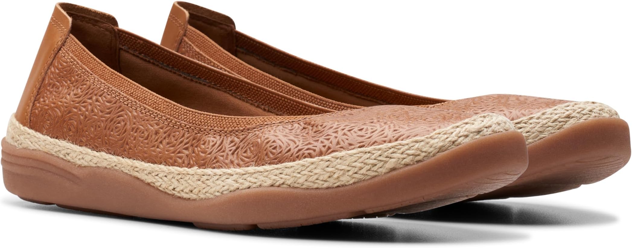 Дополните свой образ обувью Clarks Elaina Rae - от повседневных нарядов до вечерних платьев. Благодаря текстурированному верху из эластичной кожи и тканевой отделке по линии верха, эти туфли на плоской подошве удобно носить в течение долгих часов. Удобная мягкая стелька и сетчатая подкладка делают их отличным дополнением к вашей коллекции обуви. Эти стильные туфли на плоской подошве с джутовым плетением подойдут для разных случаев.