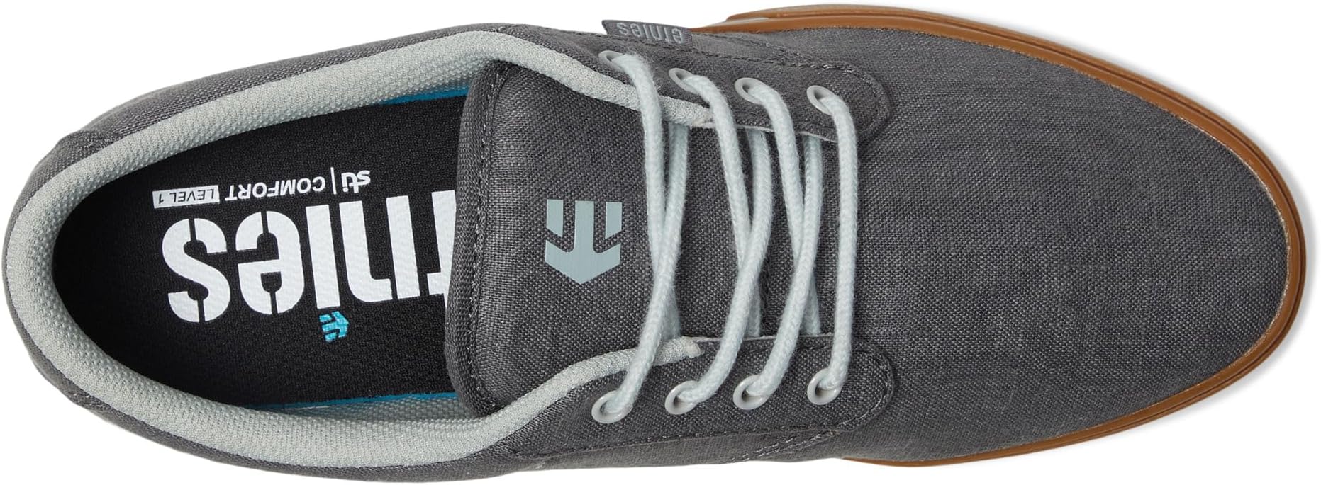 вышивка логотипа etnies на язычке, с дополнительными деталями на задней пятке и лисьей окантовке.