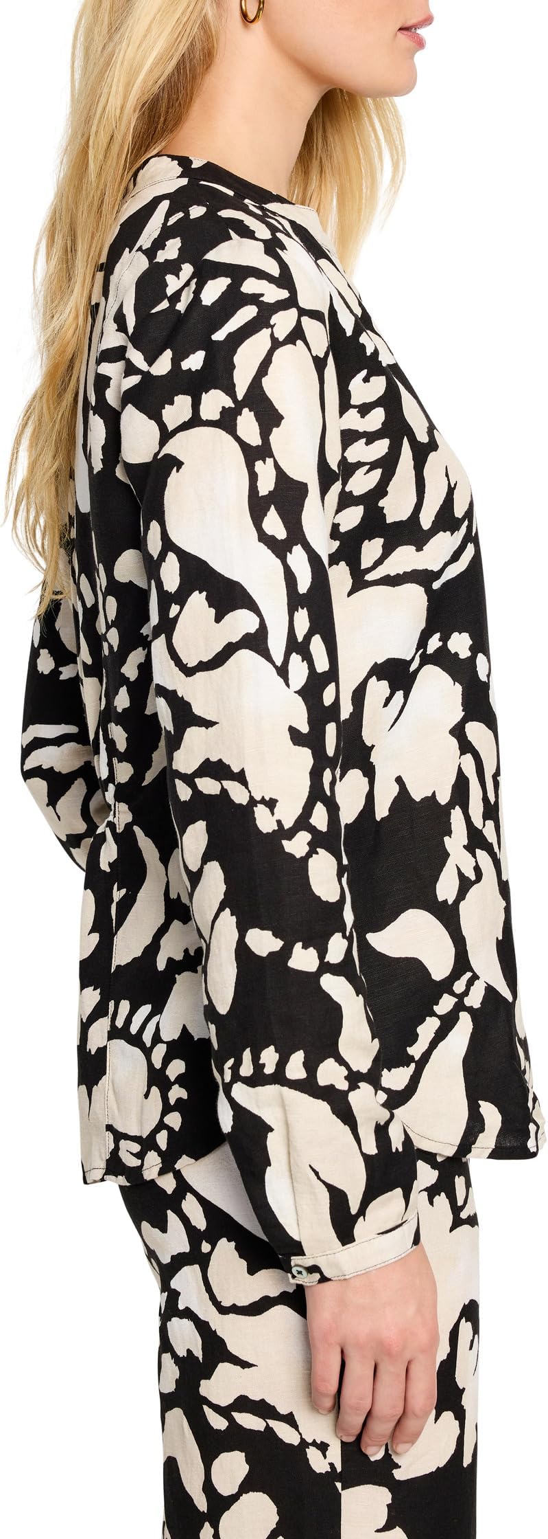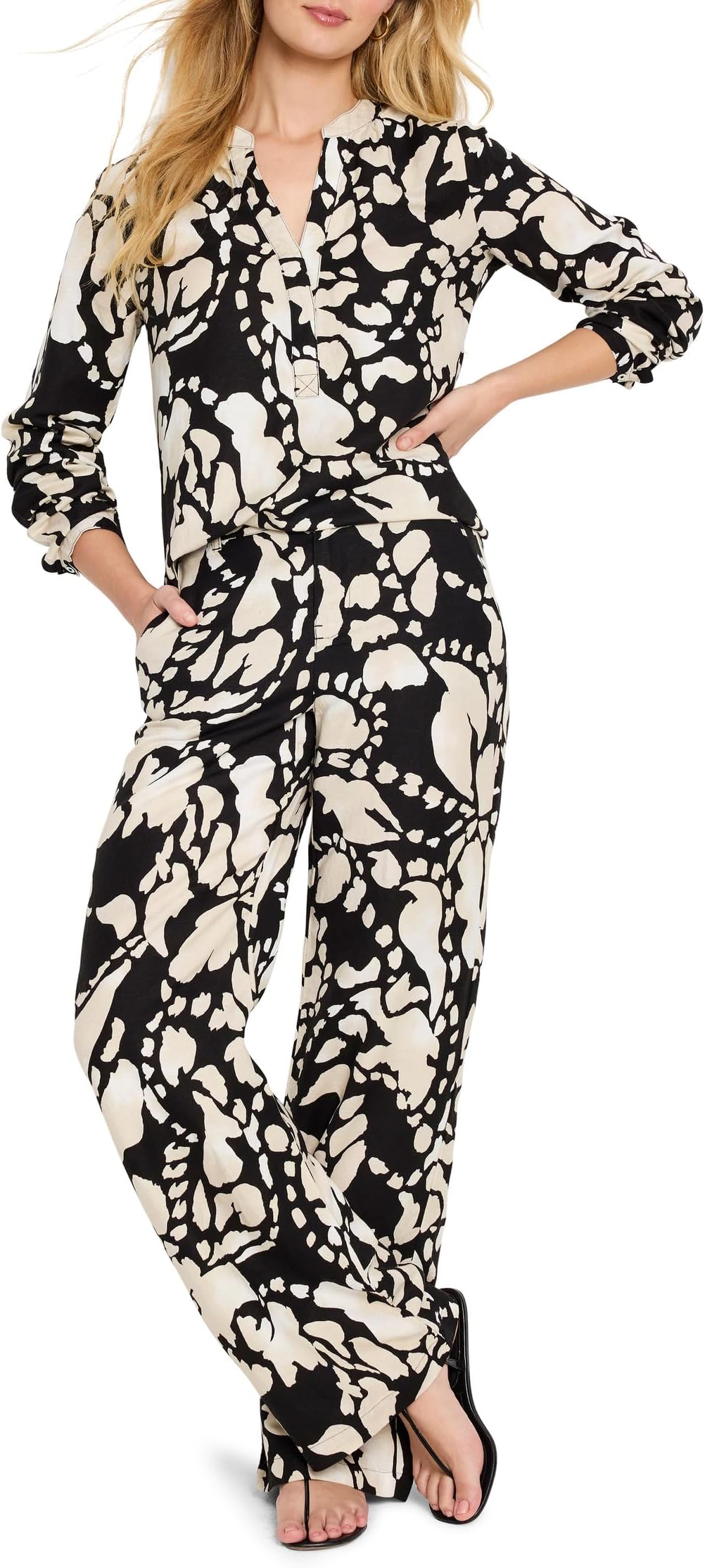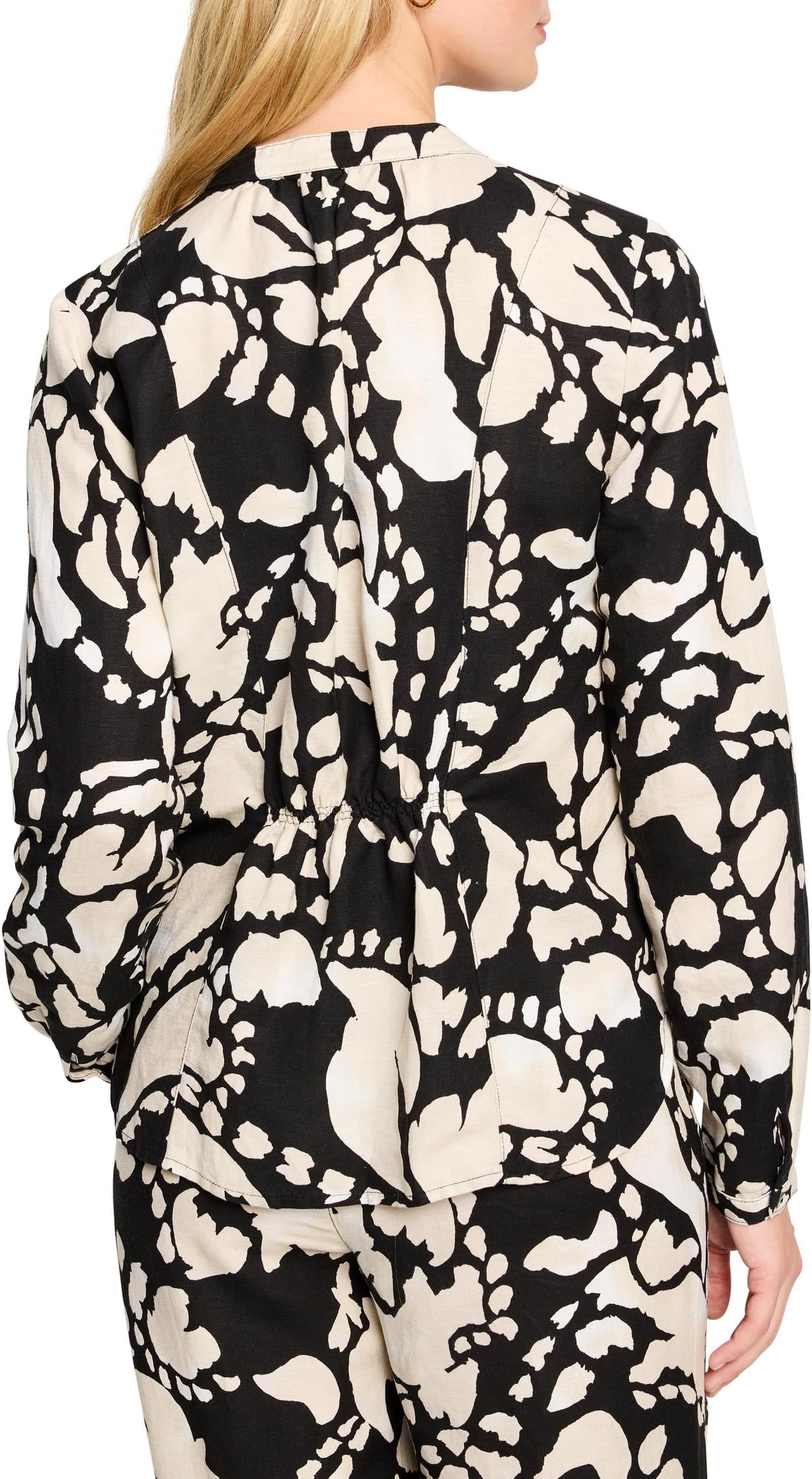 Эта вечерняя рубашка из тканого полотна NIC + ZOE из всегда модного льна привнесет нотку изысканности в повседневный стиль. Сшито из новой, изысканной смеси льна, которая отличается роскошным весом и прекрасно демонстрирует яркие принты. Силуэт с приталенным V-образным вырезом и окаймленным воротником, длинными рукавами с манжетами на пуговицах и резинкой сзади на талии создает изящный силуэт. Артикул: #10012692/55% лен, 45% вискоза.