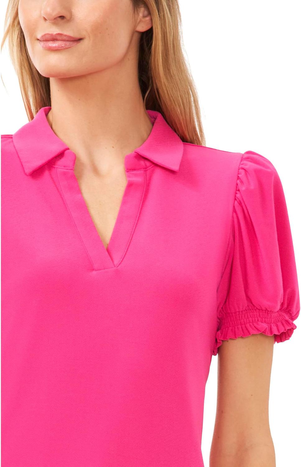 Топ CeCe Short Sleeves Split Neck Collared Top, цвет Bright Rose