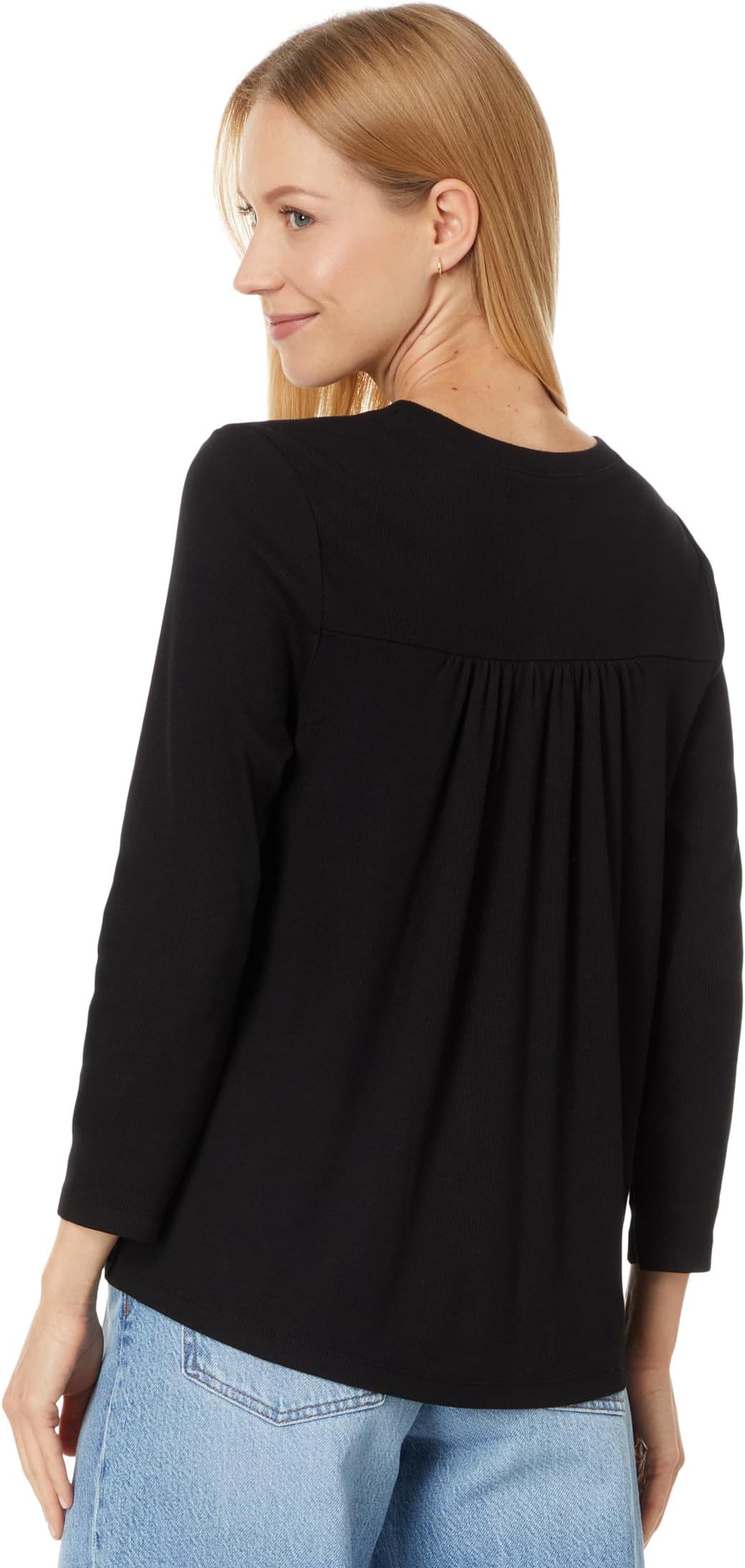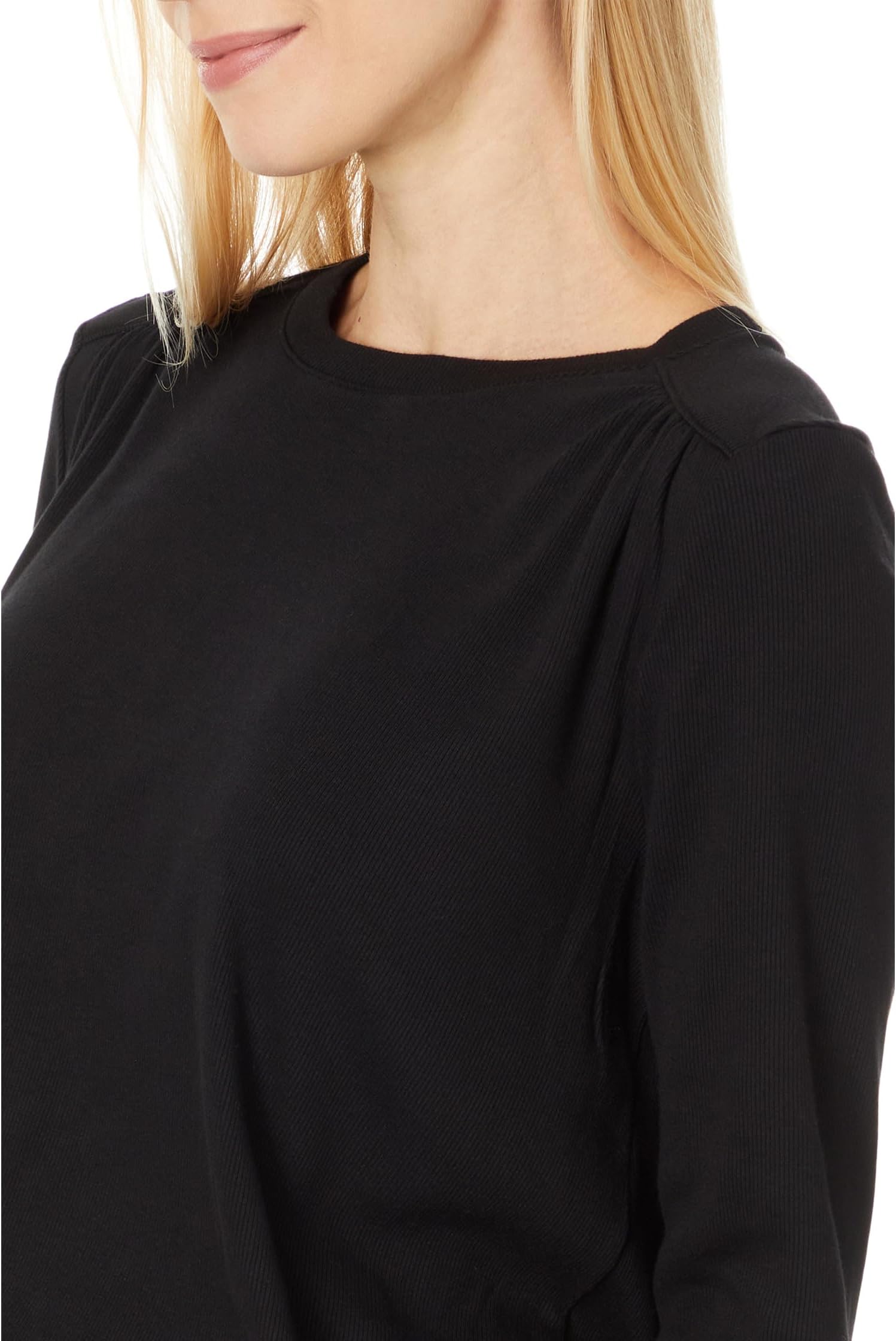 Футболка Michael Stars Shelby Ruched Shoulder 3/4 Sleeve Tee, черный