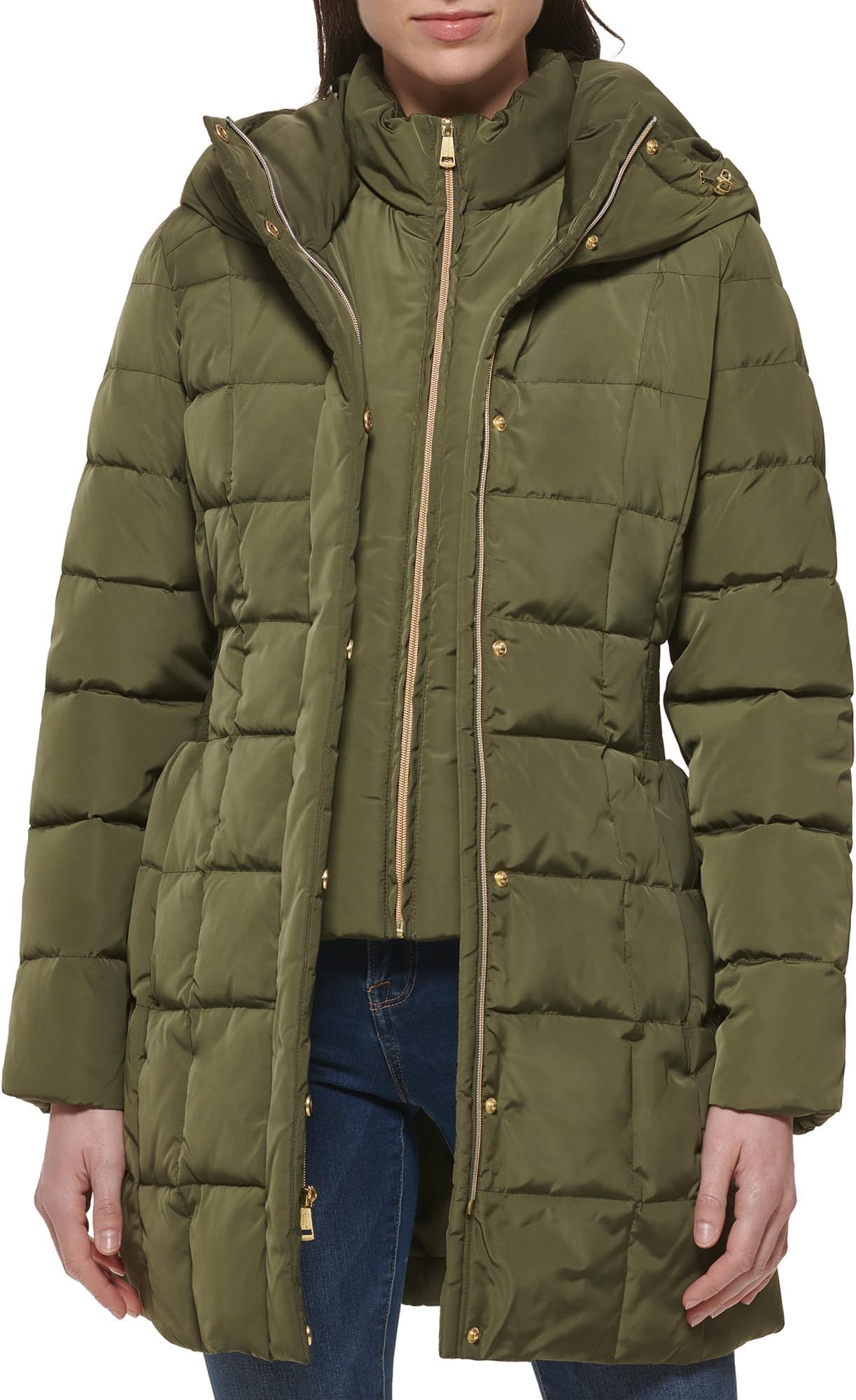 Пальто Cole Haan Taffeta Down Coat With Bib, цвет Dusty Olive