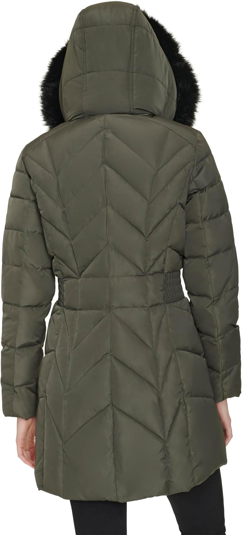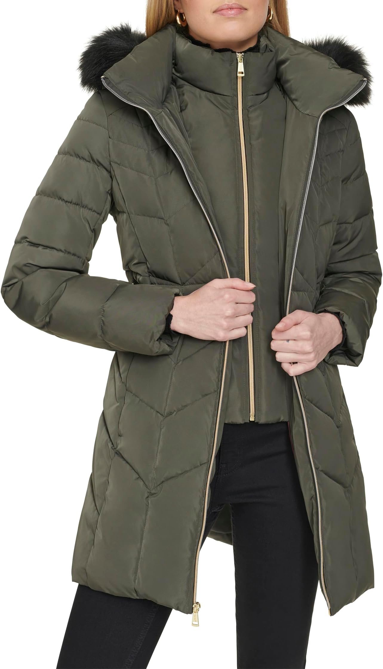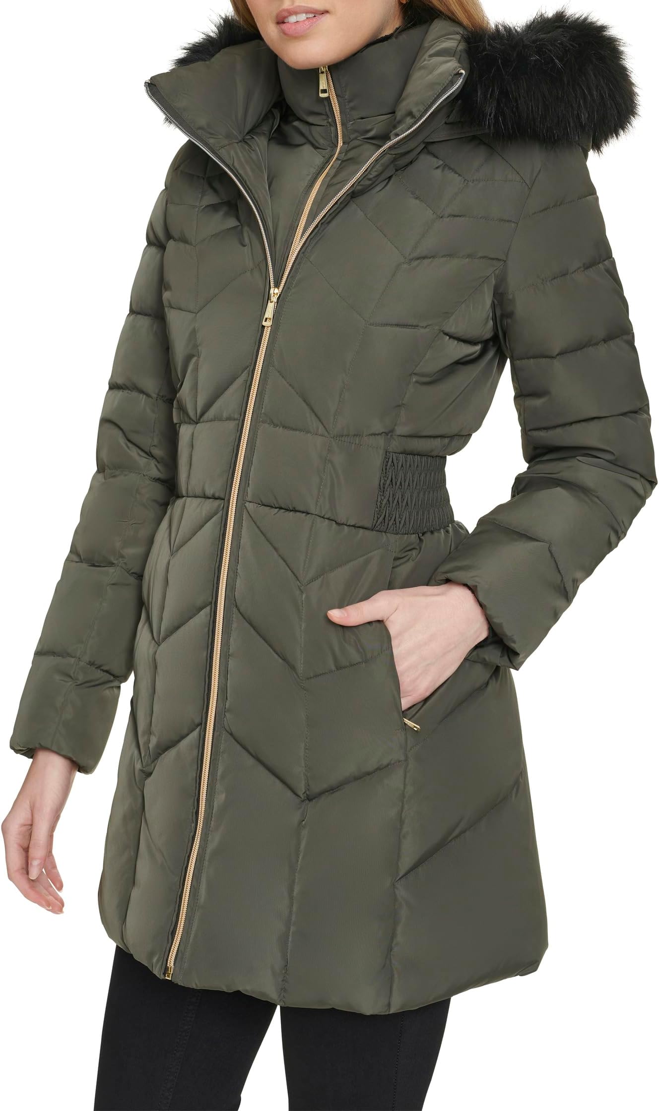 В пуховике из тафты Cole Haan вам будет тепло и комфортно. Капюшон со съемной меховой полоской и стеганым рисунком в виде шевронов делает его одновременно шикарным и функциональным. Благодаря карманам в швах и эластичным вставкам на талии он обеспечивает удобство и облегающую посадку. Полностью на подкладке для утепления, это ваше повседневное пальто для комфорта в холодную погоду.