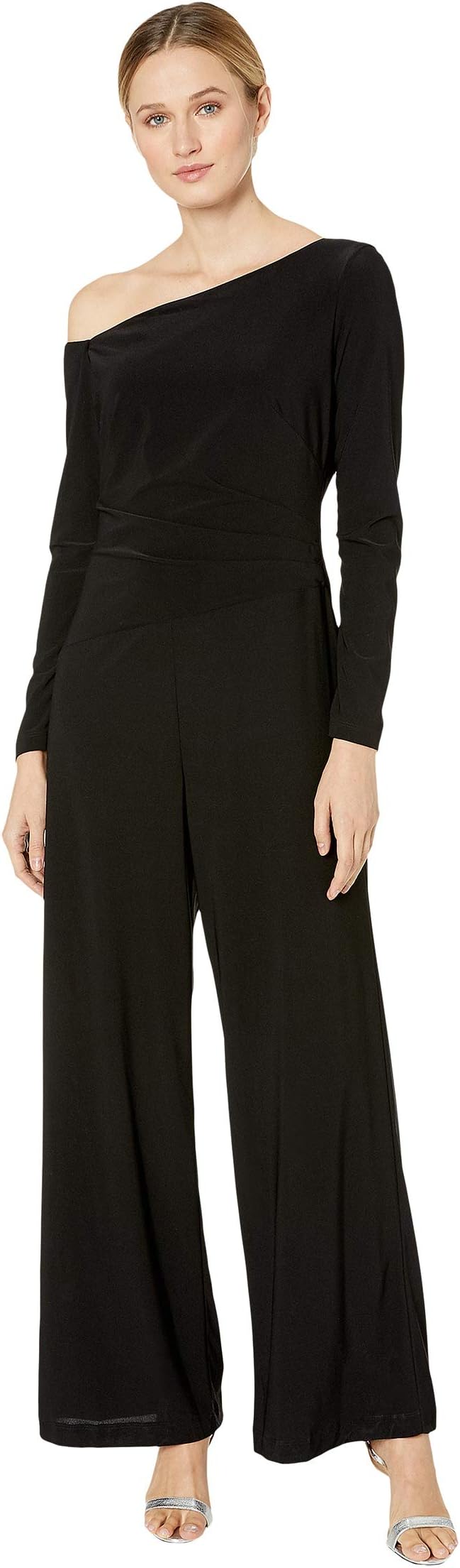 Комбинезон Taylor Long Sleeve Boat Neck Wide Leg Jumpsuit, черный