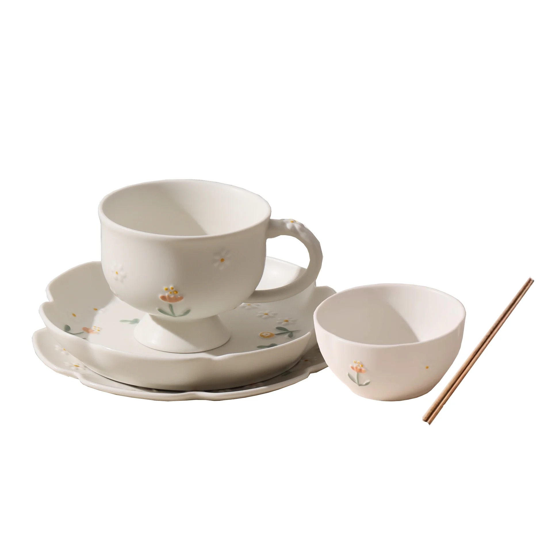 Узор в виде небольших выпуклых цветочков, созданный словно вручную, придаст утонченности. Подходят для микроволновки и для повседневного использования, легко очищается. Матовая поверхность.
