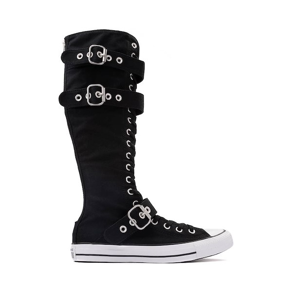 Конструкция до колена Прочный брезентовый верх с дышащей текстильной подкладкой Культовая нашивка на щиколотке Chuck Taylor и номерной знак All Star Кружевная застежка и полноразмерная молния сзади обеспечивают надежную посадку Мягкая стелька OrthoLite обеспечивает комфорт в течение всего дня Прочная резиновая подошва с алмазным протектором обеспечивает гибкое сцепление Стиль производителя: A14873C