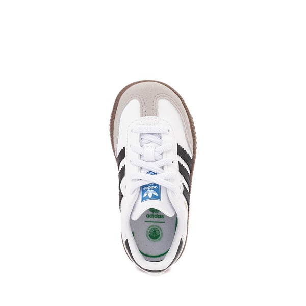 Верх из гладкой кожи с замшевыми накладками для воссоздания классического образа Samba Мягкая синтетическая подкладка Этикетка на языке синей птицы в винтажном стиле Эластичная кружевная застежка для удобства надевания и снимания Контрастная искусственная кожа с 3 полосками на четверти Мягкая стелька OrthoLite обеспечивает комфорт в течение всего дня Прочная резиновая подошва обеспечивает гибкое сцепление