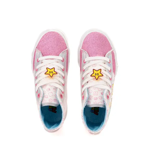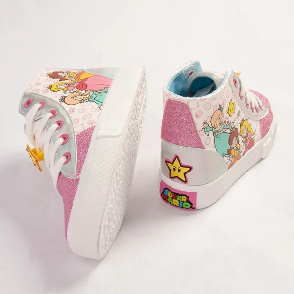 В этом сезоне подчеркните милый ретро-стиль с кроссовками Mario Princess Hi от Ground Up! Эти высокие кроссовки с парусиновым верхом в стиле Super Mario Bros. принты, блестящие и металлические вставки для блеска, кружевные застежки с подвесками Super Star для надежной посадки, прочная резиновая подошва для гибкого сцепления и графика персонажей с изображением принцесс Пич, Розалины и Дейзи из серии классических видеоигр. Цвет: светло-розовый / Многоцветный Код стиля: 1800056
