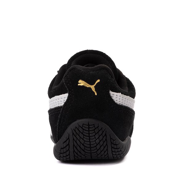 Упри педаль в металл с помощью спортивной обуви Speedcat OG от PUMA! Кроссовки в гоночном стиле с верхом из мягкой замши с дышащей сетчатой подкладкой, вышивкой в виде кошки PUMA на носке, закругленной водительской пяткой и протектором, напоминающим шины, для тех, кто живет на скоростной трассе. Доступно в избранных магазинах и онлайн по адресу JourneysKidz.com! Цвет: черный / Белый Код стиля: 99362296