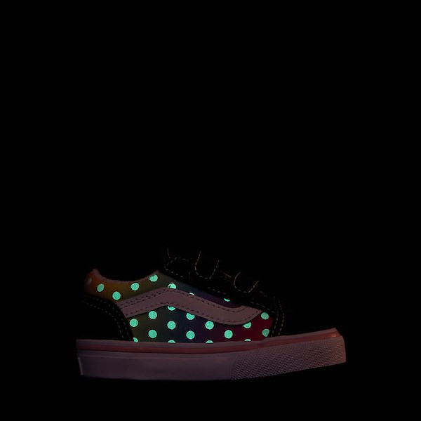 Подчеркните их потрясающий стиль с помощью старых коньковых ботинок Skool V в горошек от Vans! Скейтборды Old Skool V в горошек имеют прочный верх из замши и парусины с фирменным рисунком Sidestripe в светящийся в темноте горошек и классическую вулканизированную подошву, обеспечивающую гибкий захват и сцепление. Пожалуйста, обратите внимание: продукты, светящиеся в темноте, требуют воздействия прямого света (лучше всего солнечного), чтобы зарядить светящиеся части. Каждые 7-8 минут, потраченные на зарядку, дают примерно 10 минут свечения. Цвет: Черный / Радужный Код стиля: 99496244