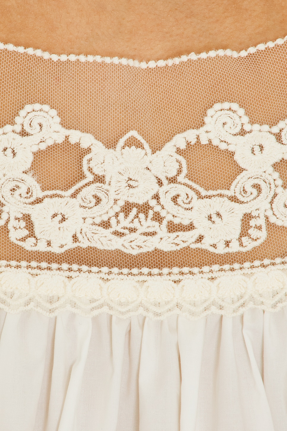 Ткань поплин средней плотности с контрастной вышивкой из тюля и кружева