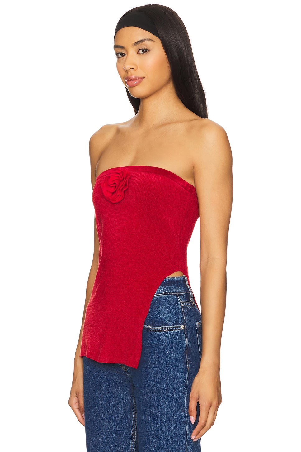 Топ Belle с джинсами, red