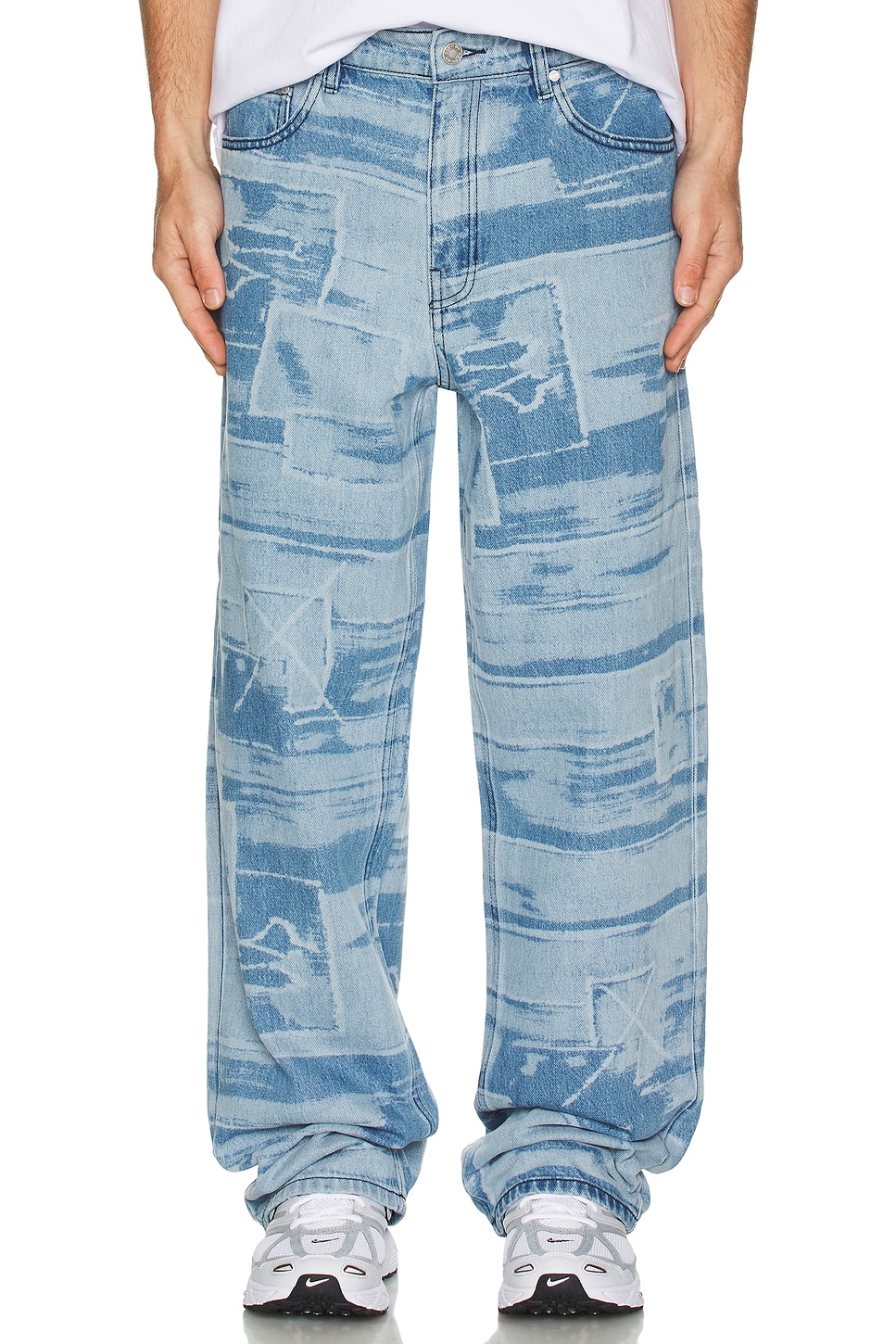 Жесткий деним средней плотности с лазерной печатью деталей по всему изделию