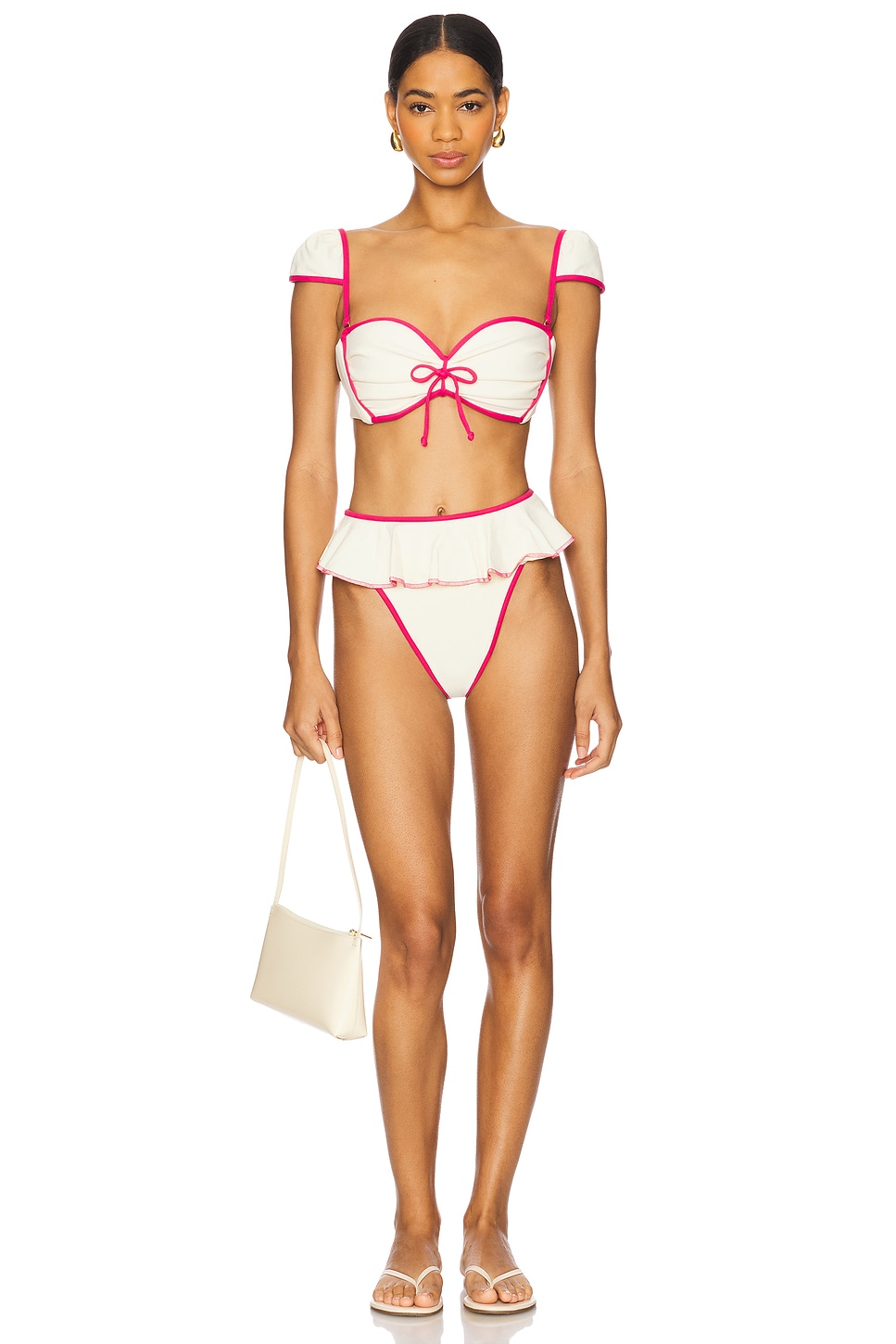 Топ бикини с бантиками Cabana Montce Swim, cream & raspberry