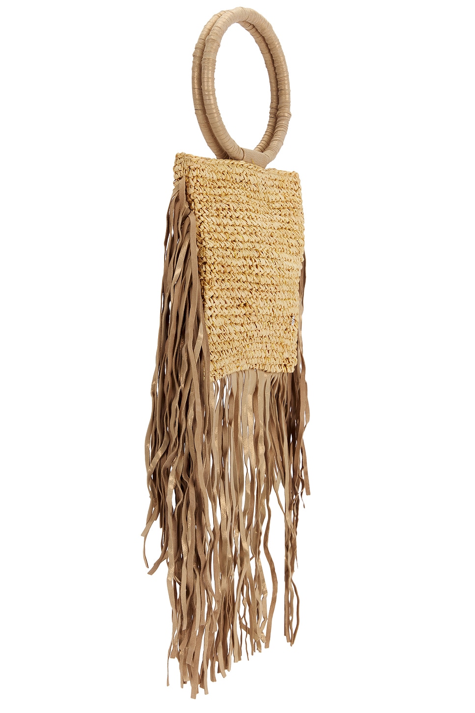 Снаружи плетеная рафия с текстильной подкладкой и золотистой фурнитурой
