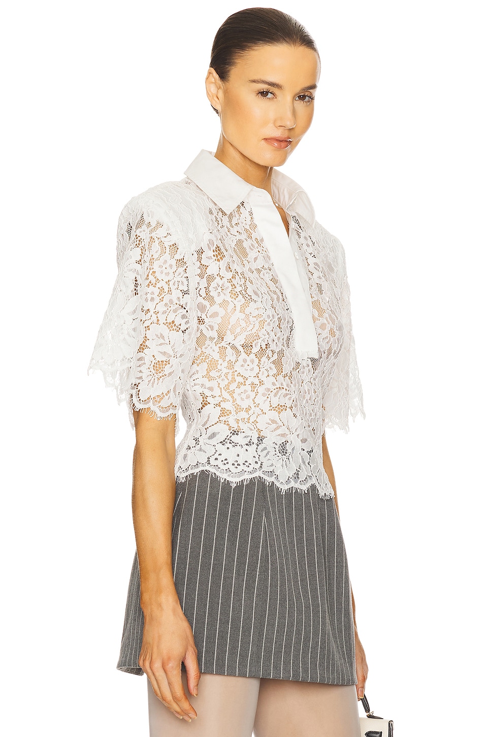 Кружевная рубашка с плечевыми накладками Helsa, white
