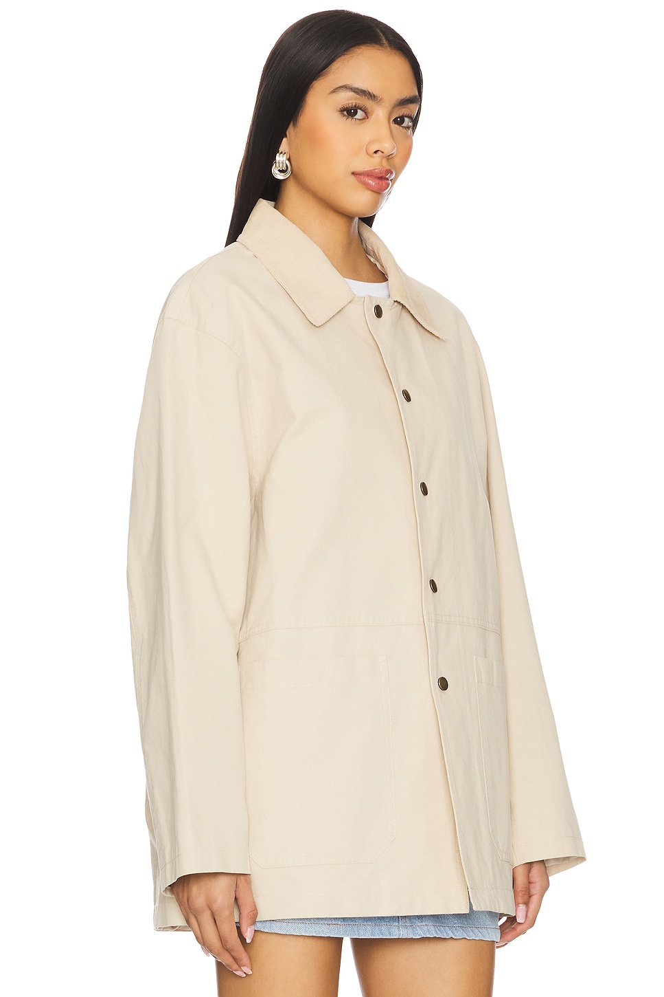 Среднеплотная парусиновая ткань с контрастным вельветовым воротником