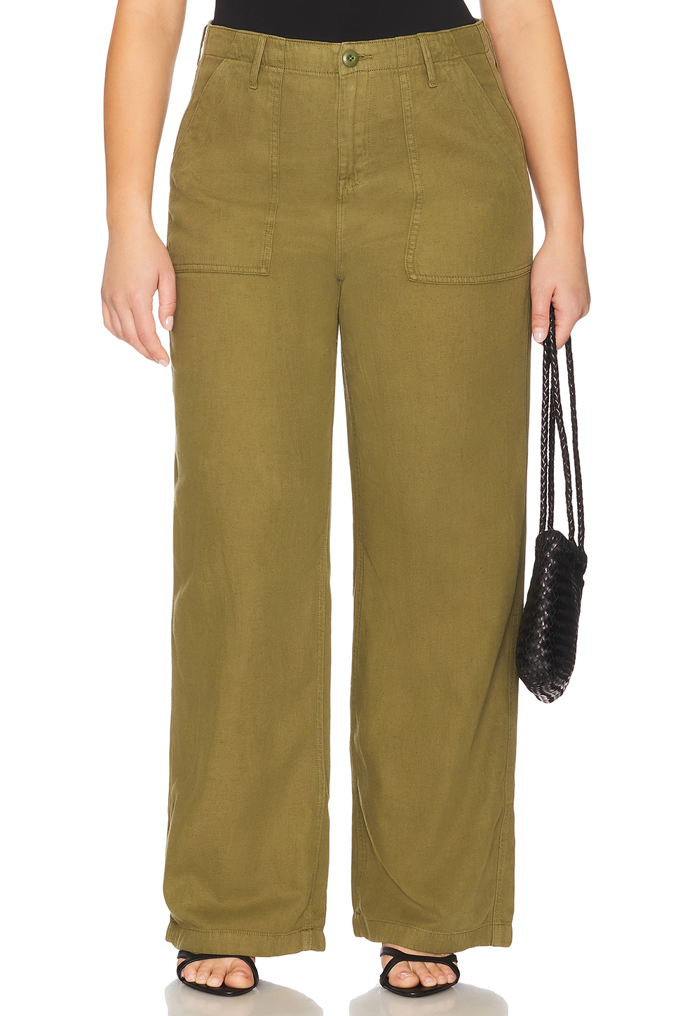 Легкие льняные брюки Good American, martini olive002