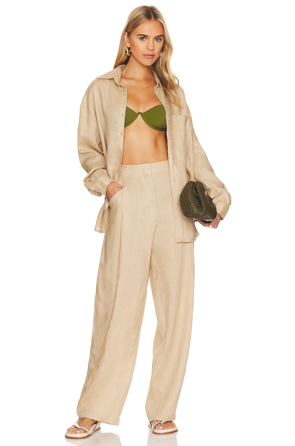 Льняные брюки с высокой талией Aexae, beige