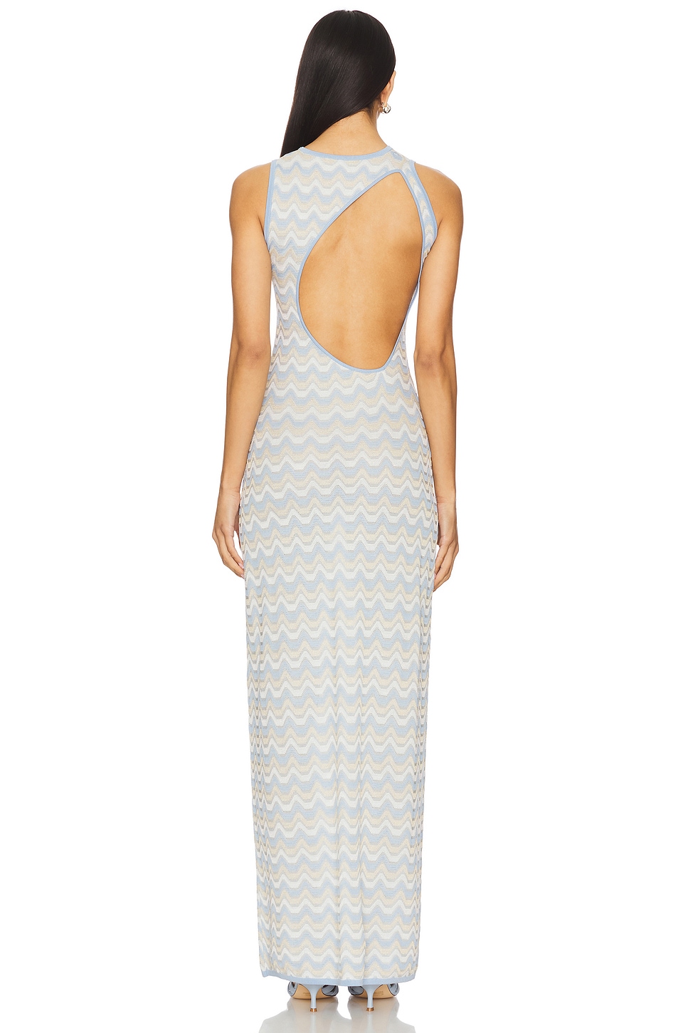 Трикотаж средней плотности с металлическим оттенком и вырезом на спине