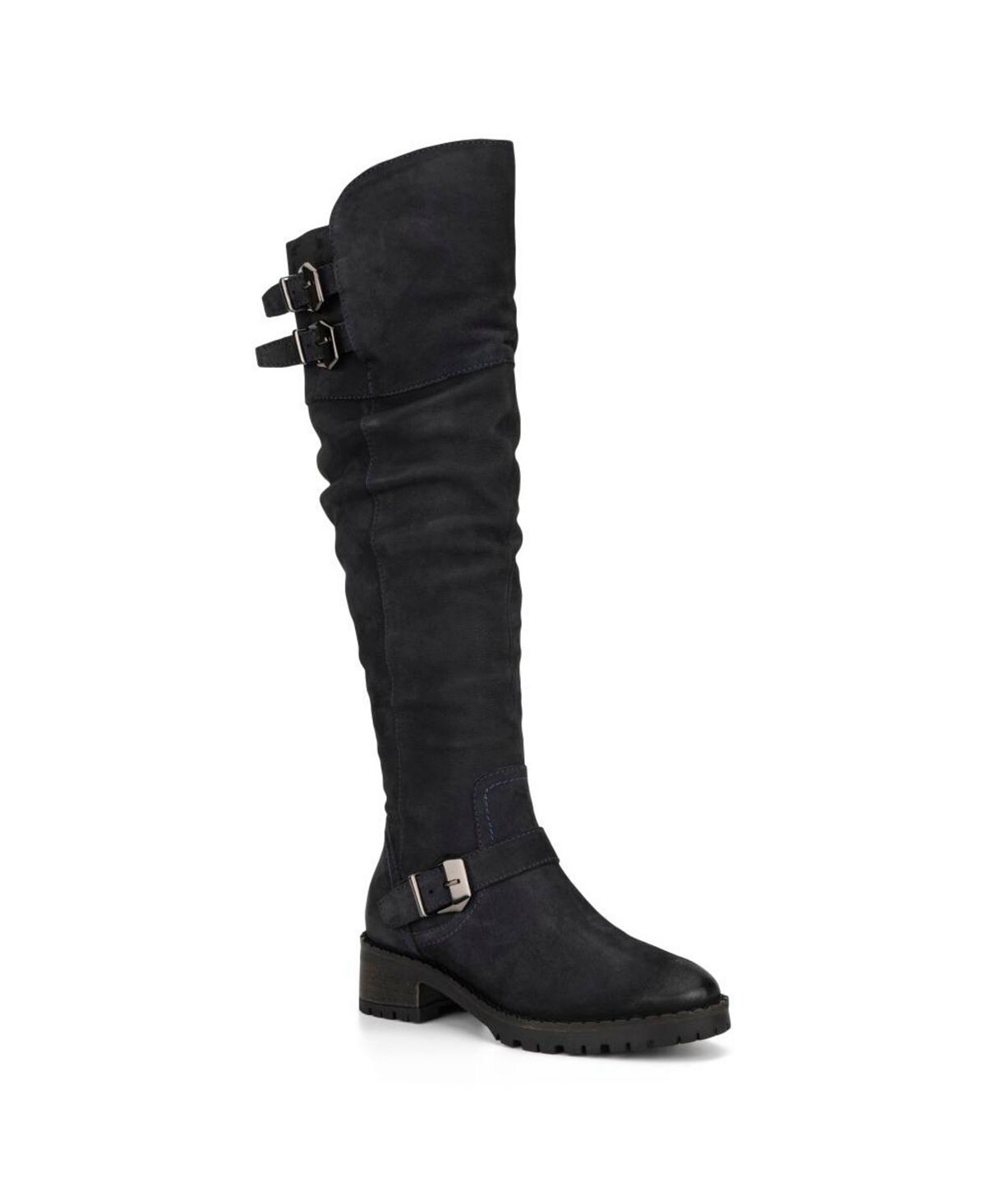 Эти элегантные ботинки для верховой езды Over the Knee имеют верх из высококачественной замши, доходящий до колен. Выдвижная конструкция облегчает включение и выключение. Детали закругленного мыска и ремня с пряжкой на щиколотке и верхней части придают модели острую привлекательность. Резиновая подошва и блочный каблук обеспечивают удобную посадку.