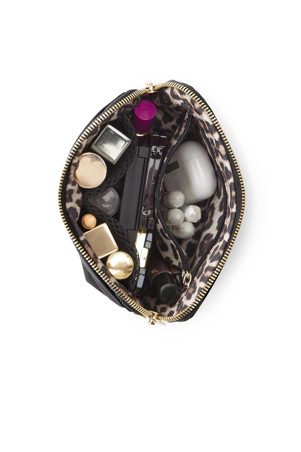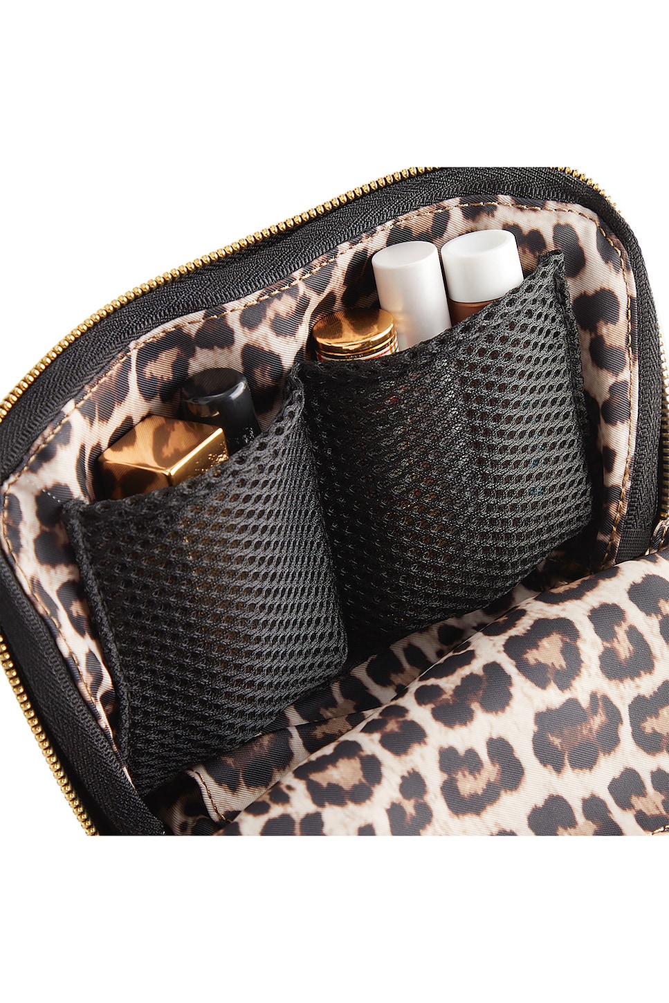 Внутренняя застежка-молния и два сетчатых кармана для спонжей и аксессуаров