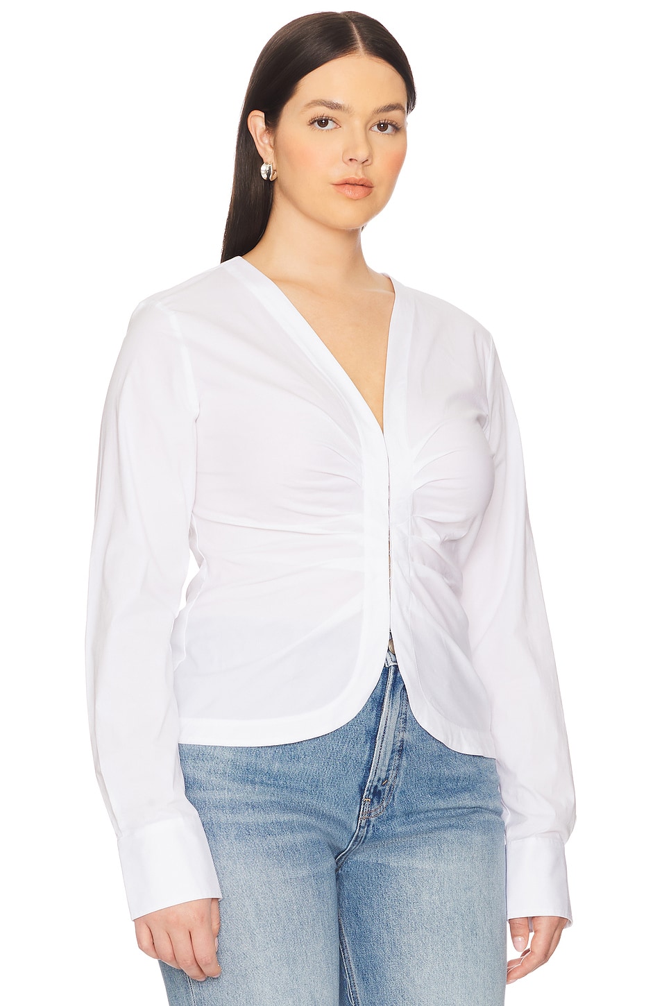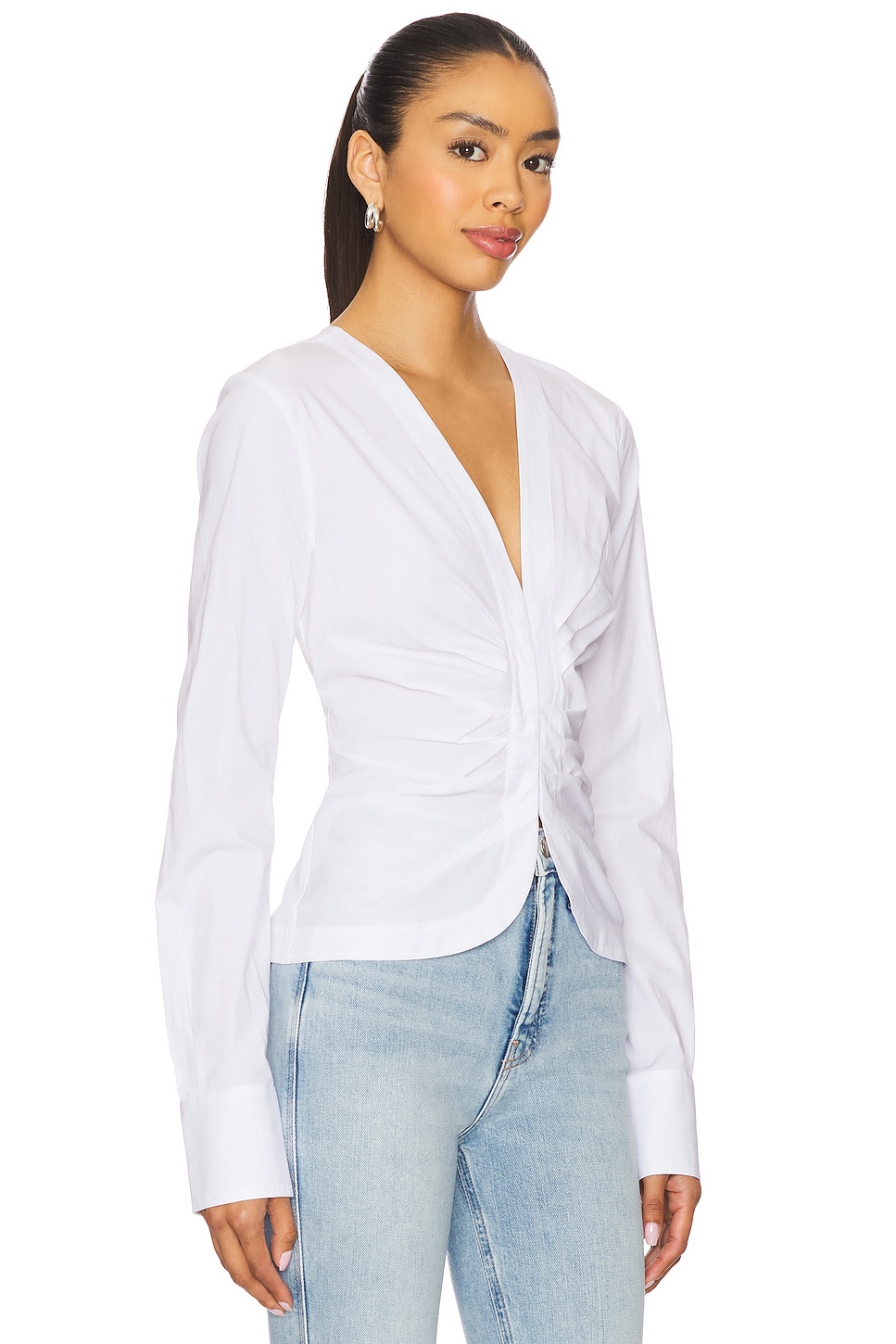 Женская сорочка в сборку из поплина Good American, white001