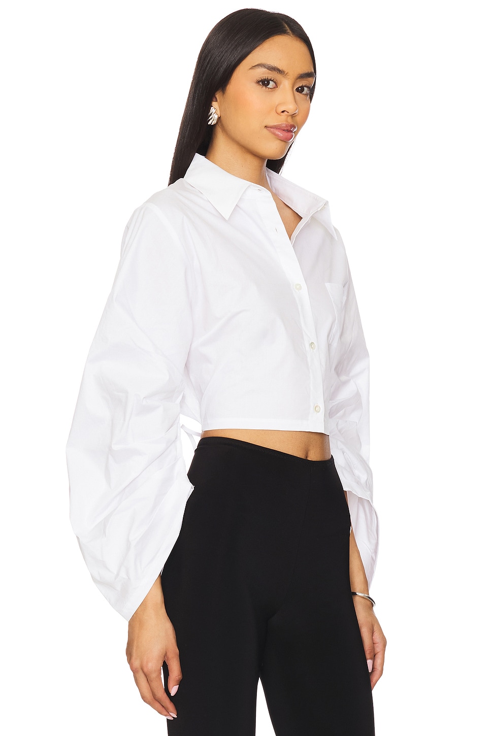 Плиссированные рукава-фонарики с асимметричными манжетами