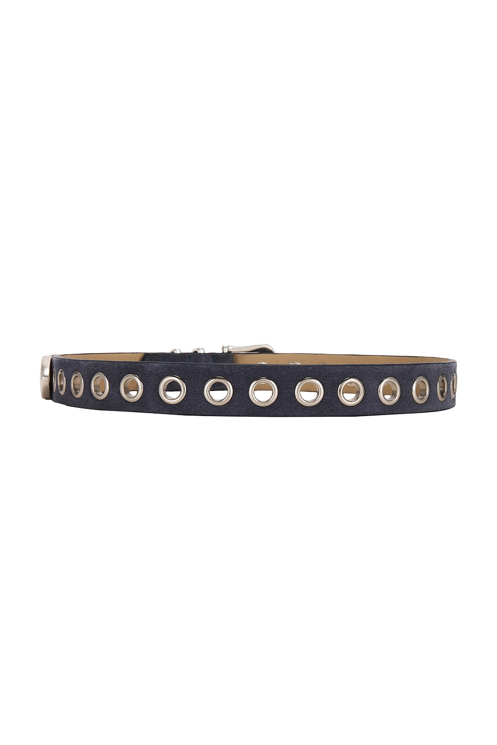 Замшевый ремень с серебристыми люверсами по всей длине