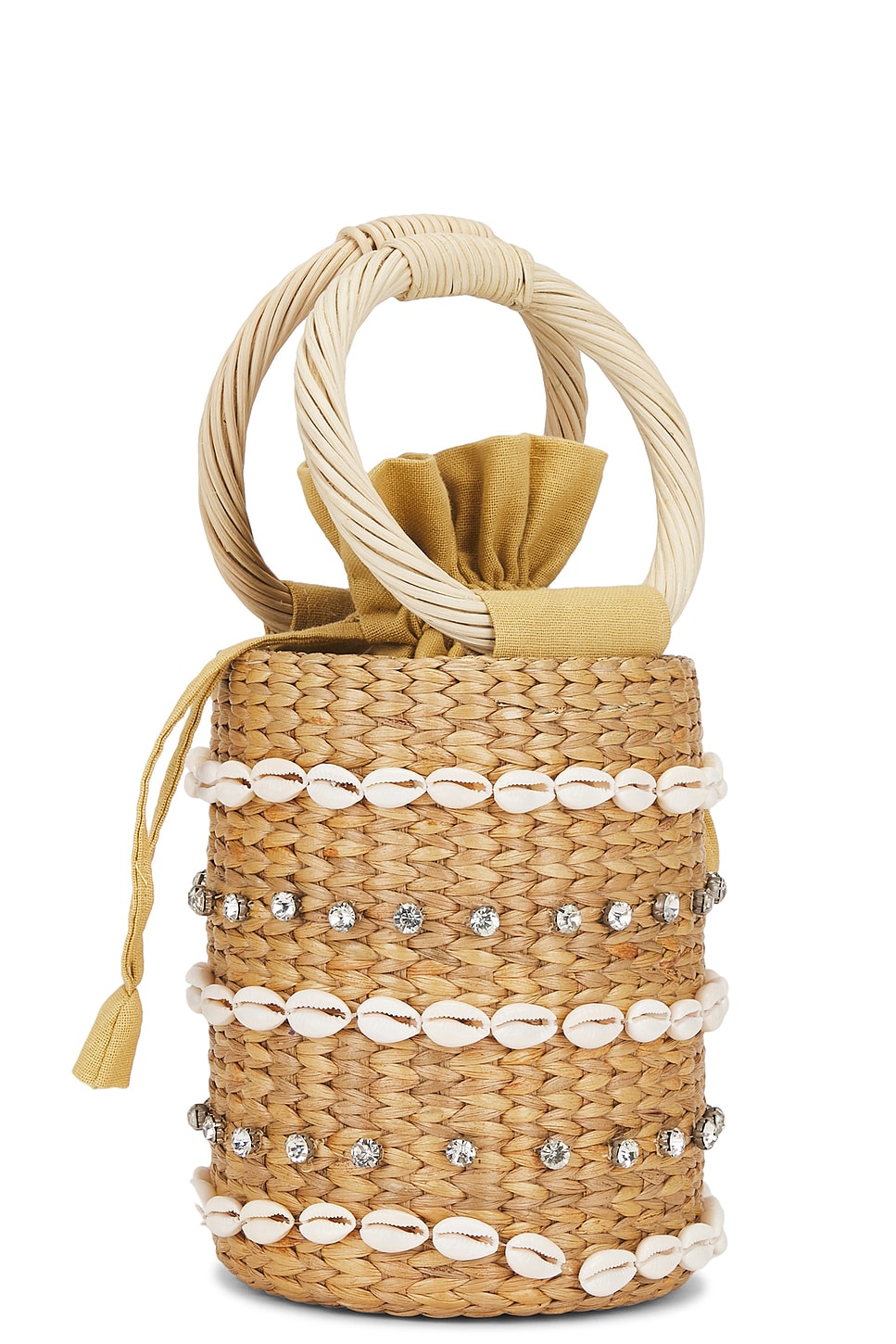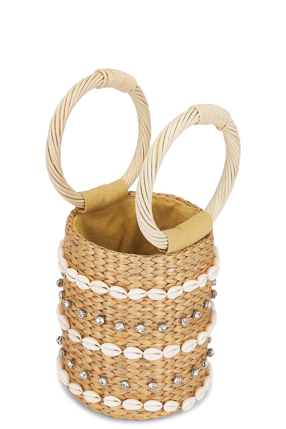 Внешняя часть из рафии с украшениями из кристаллов и ракушек каури, текстильная подкладка