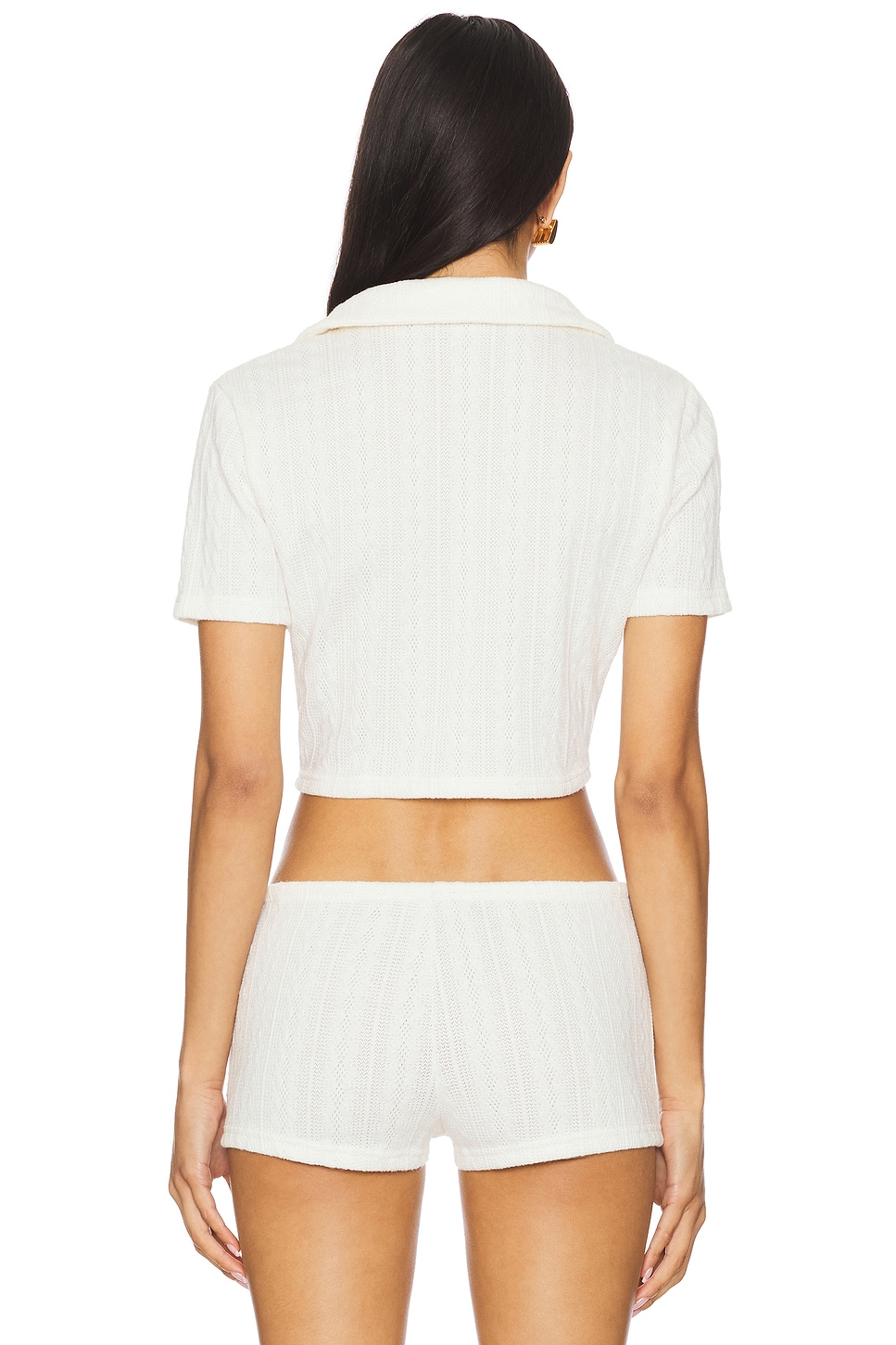 Трикотаж средней плотности с ажурным узором и укороченным фасоном