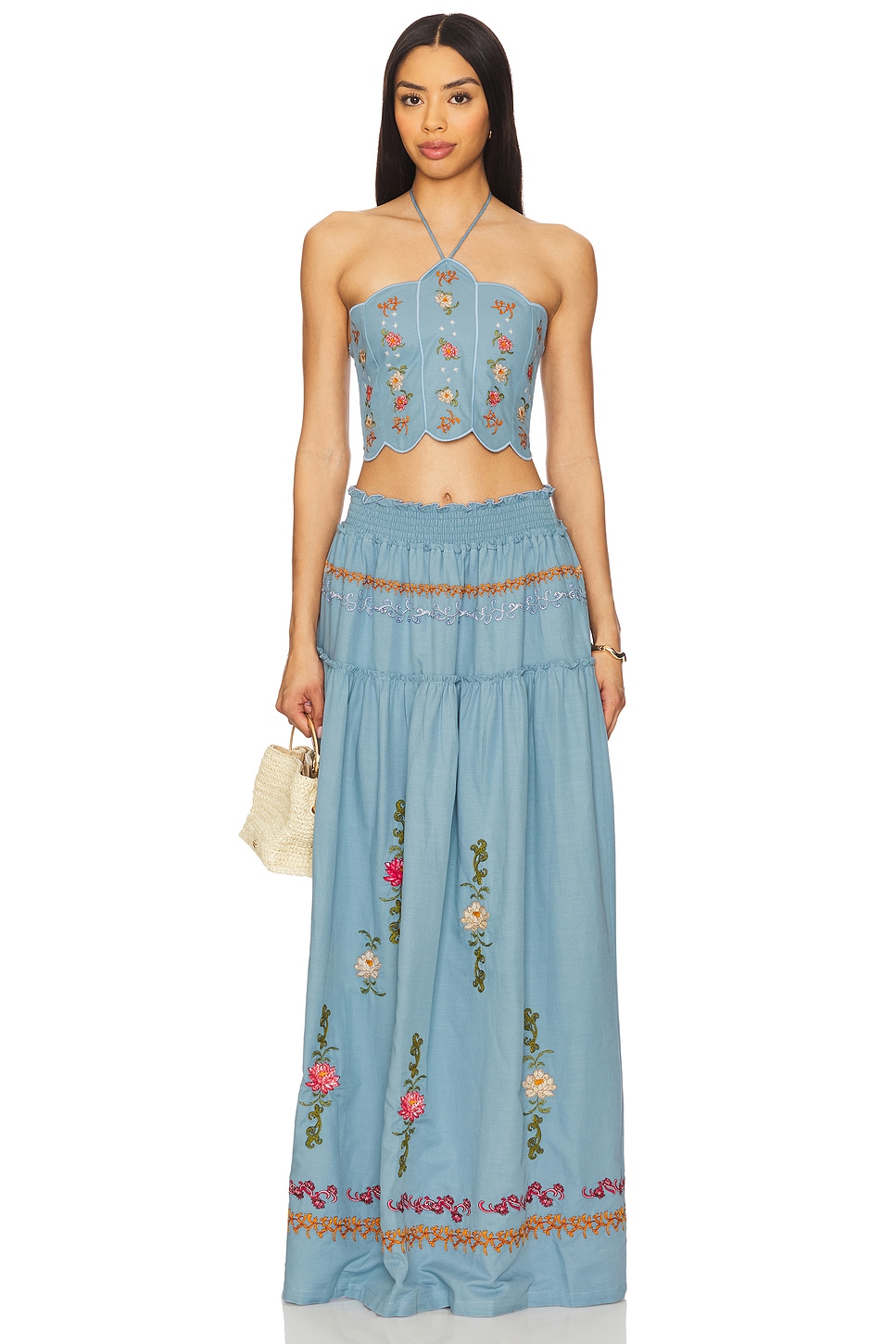Вышитые цветочные детали по всему изделию