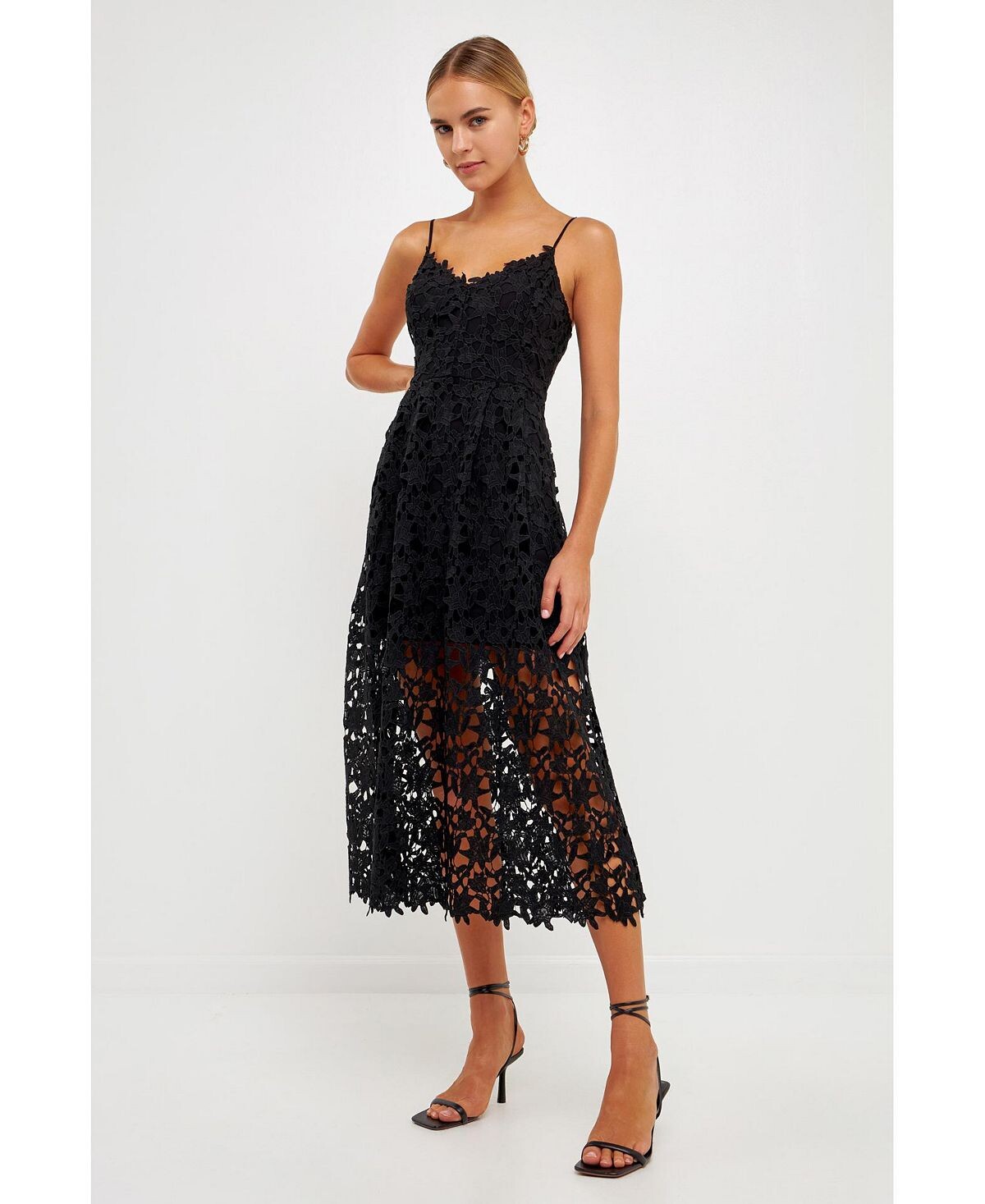 Женское кружевное платье-миди на бретельках endless rose, черный