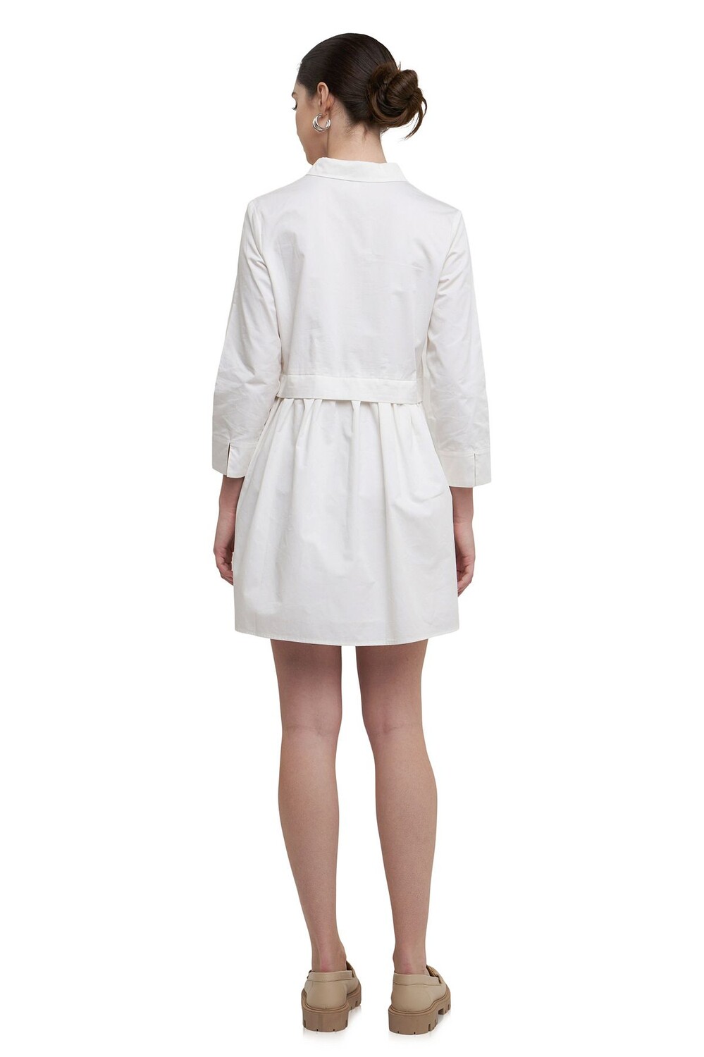 Это мини-платье-рубашка с воротником — воплощение универсальности. В этом платье из мягкого дышащего хлопка вам будет комфортно носить его весь день! Воротник, рукава длиной 3/4 и свободный крой А-силуэта делают это платье идеальным для рабочего дня или приятного ужина!