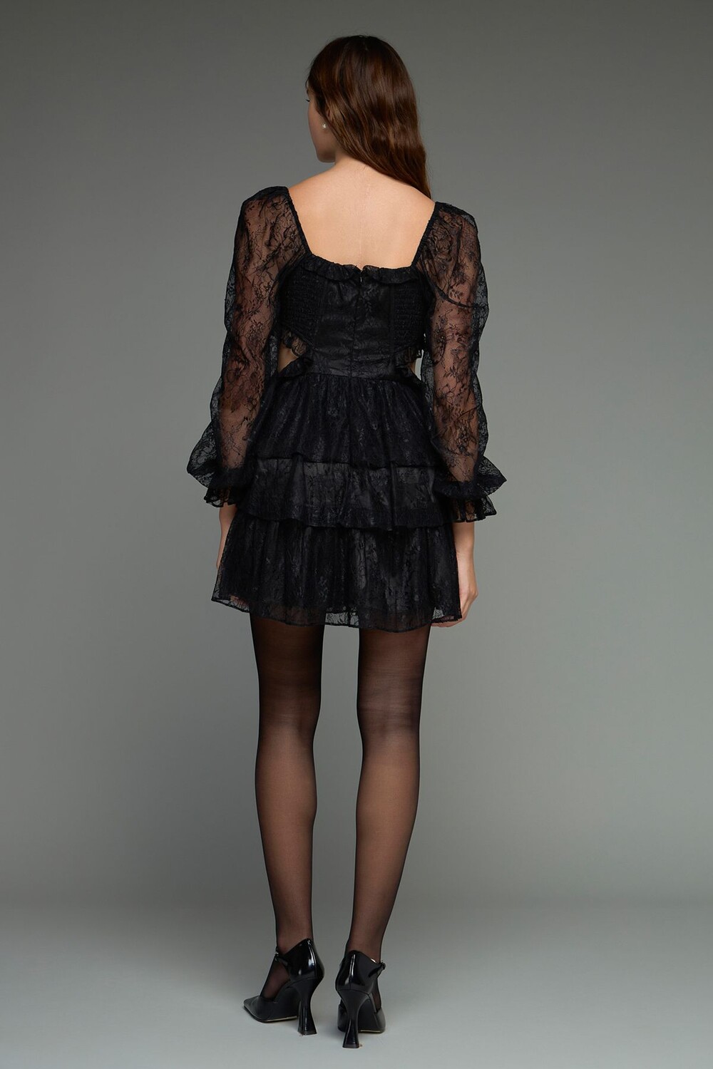 Это мини-платье, выполненное из замысловатого цветочного кружева, имеет волнистые длинные рукава и вырез в форме сердца, создающие элегантный силуэт. Мы использовали самое тонкое кружево, чтобы вы чувствовали себя уверенно и сногсшибательно в этом маленьком черном платье. Кроме того, молния сзади облегчает надевание!