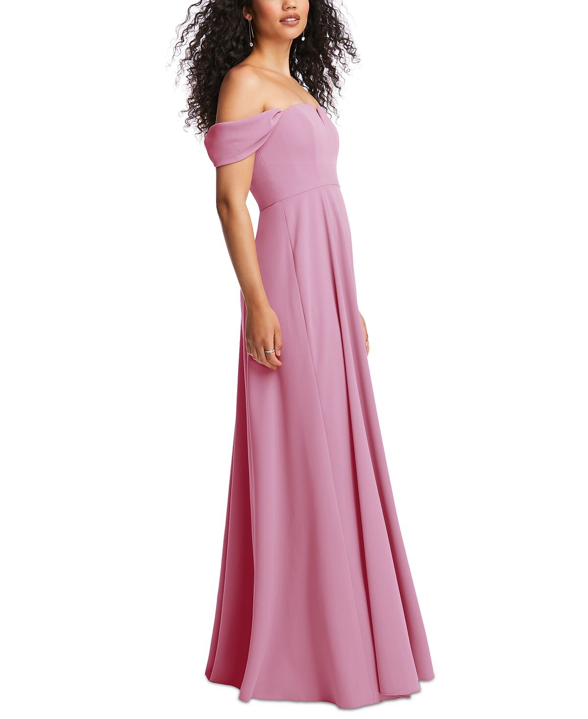 Добавьте романтики вашему следующему свадебному образу с этим платьем из коллекции Dessy с красивым вырезом с открытыми плечами.