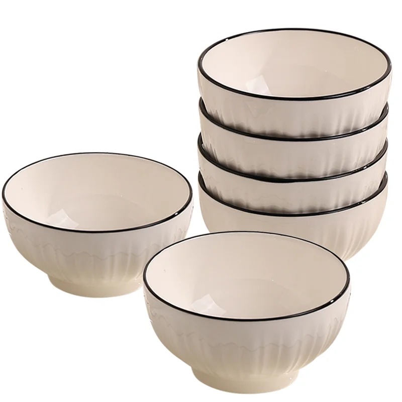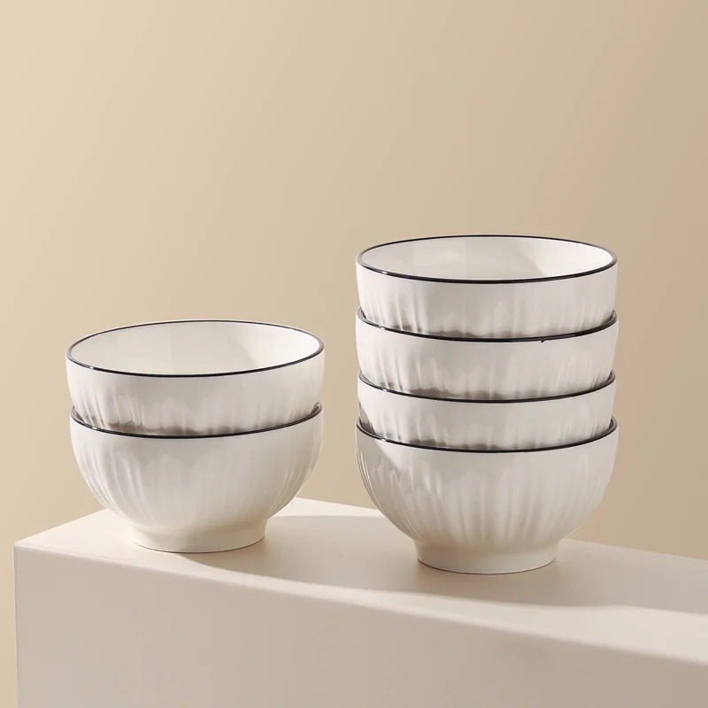 Белые керамические тарелки с черным ободком. Подходят для подачи различных блюд, таких как рис, закуски, йогурт, мороженое или индивидуальные десерты. Эти изделия идеально подходят для любого приема пищи, они сочетают в себе функциональность и элегантность, что делает их идеальными как для повседневного использования, так и для особых случаев.. Этот комплект, тщательно продуманный для современного дома, станет прекрасным выбором в качестве подарка на новоселье, гармонично сочетая в себе стиль и практичность.
