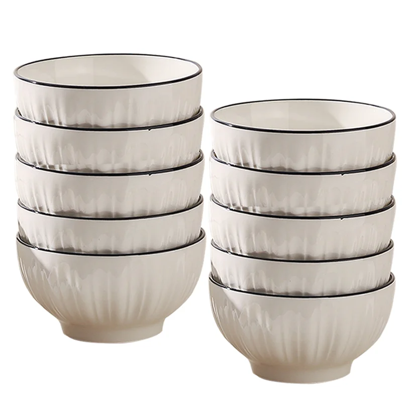Белые керамические тарелки с черным ободком. Подходят для подачи различных блюд, таких как рис, закуски, йогурт, мороженое или индивидуальные десерты. Эти изделия идеально подходят для любого приема пищи, они сочетают в себе функциональность и элегантность, что делает их идеальными как для повседневного использования, так и для особых случаев.. Этот комплект, тщательно продуманный для современного дома, станет прекрасным выбором в качестве подарка на новоселье, гармонично сочетая в себе стиль и практичность.