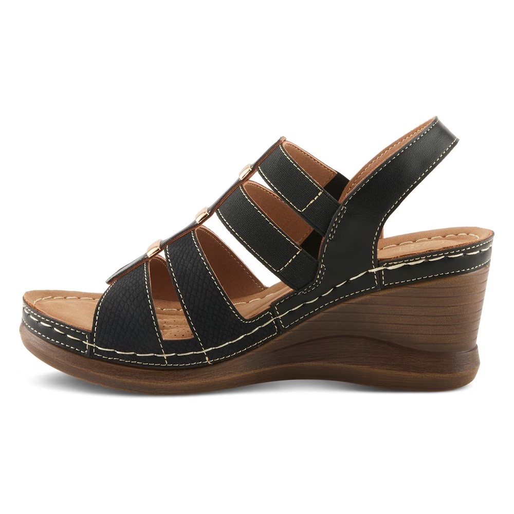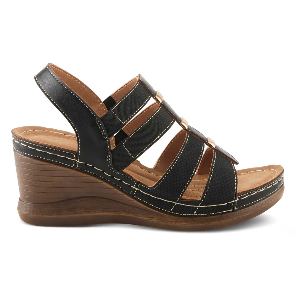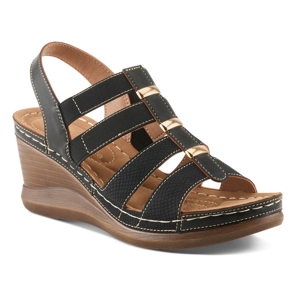 Верх из искусственной кожи в стиле босоножек на танкетке с открытым круглым носком