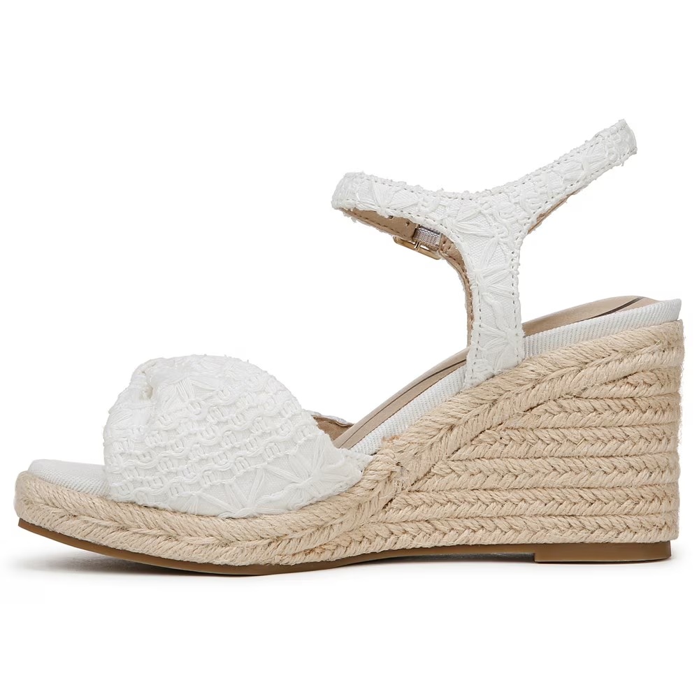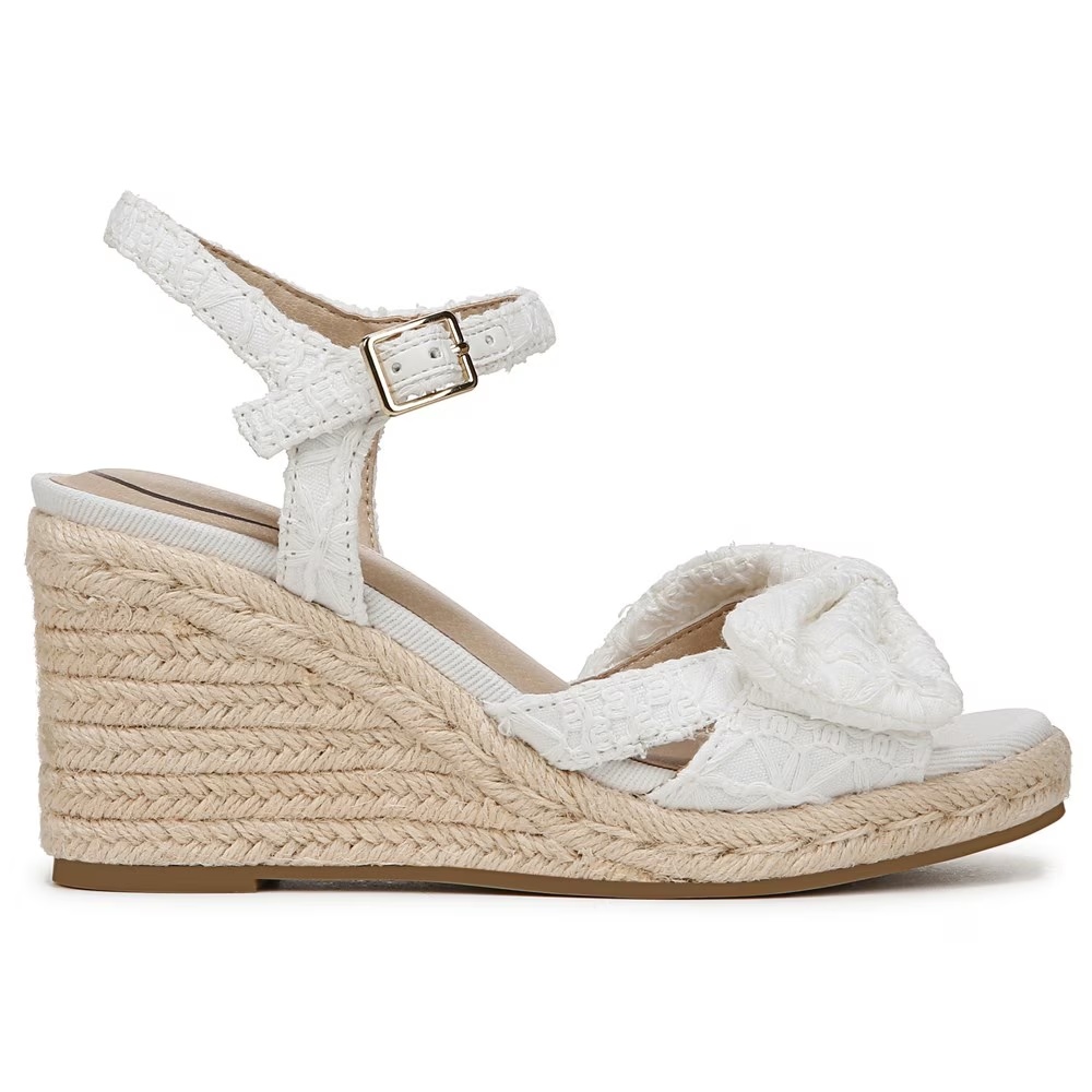 Выглядеть мило никогда не было так приятно в этих кокетливых босоножках-эспадрильях с танкеткой и превосходной амортизацией. Разработаны из парусины, ткани или искусственной кожи, с открытым круглым носком, регулируемой пряжкой, женственным бантом и обернутой джутом танкеткой-эспадрилье.