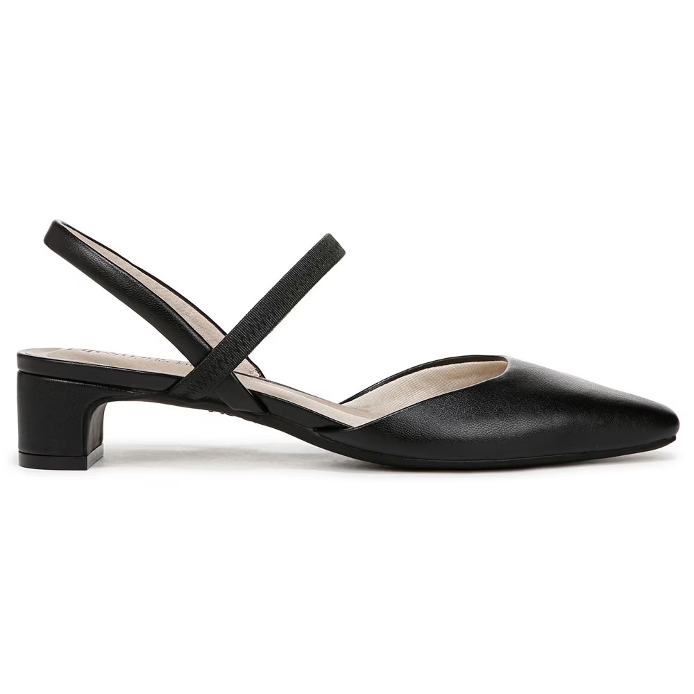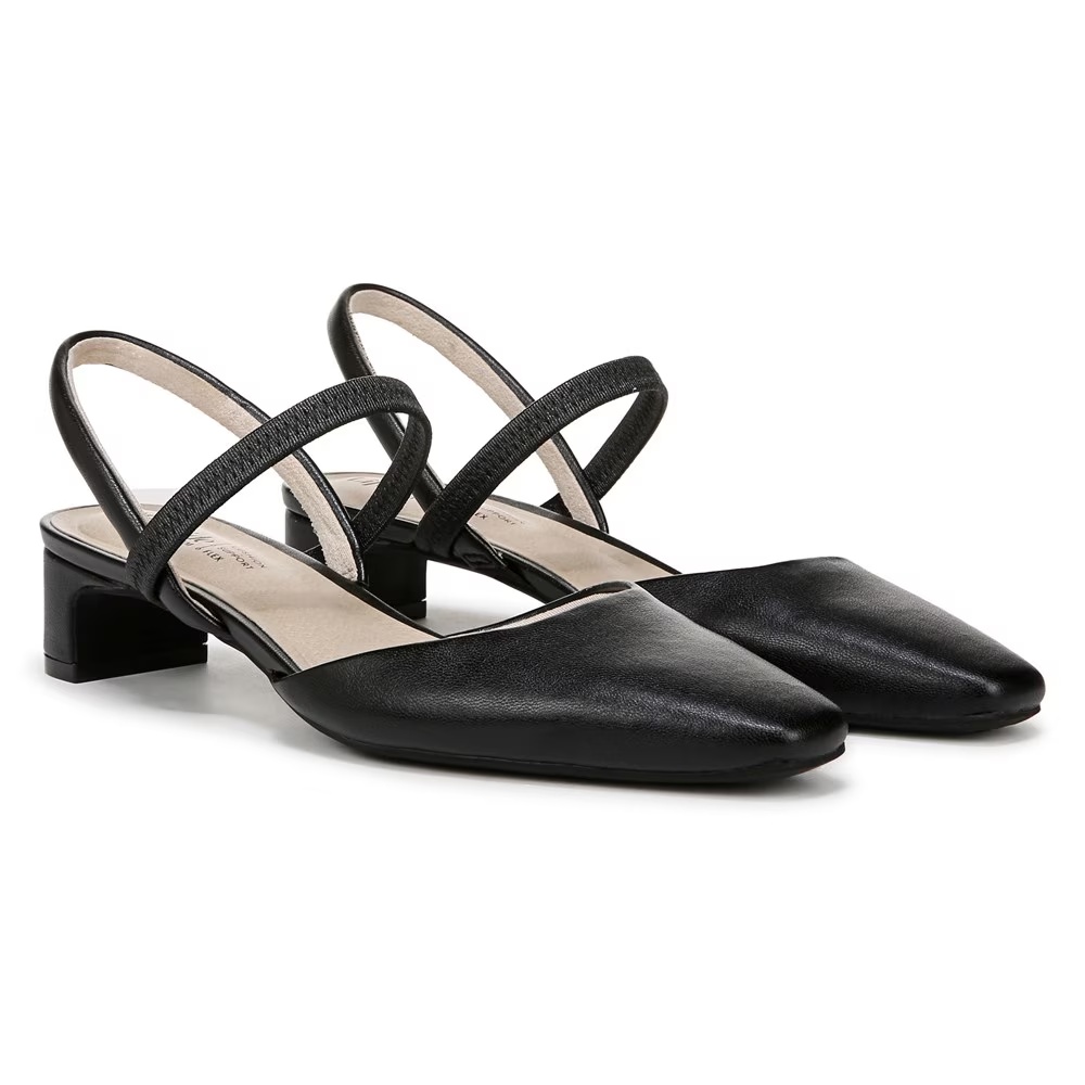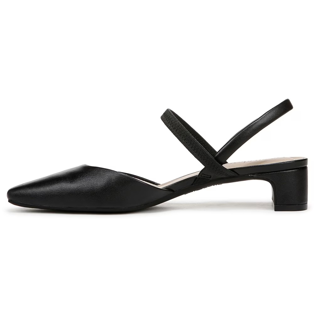 Поднимите повседневность в этих простых и удобных женских туфлях на каблуке. Туфли-лодочки на каблуке-киттен из искусственной кожи, с мягким заостренным носком, без застежек, с эластичным ремешком для дополнительной гибкости и современным блочным каблуком. Подкладка изготовлена из частично переработанных материалов.